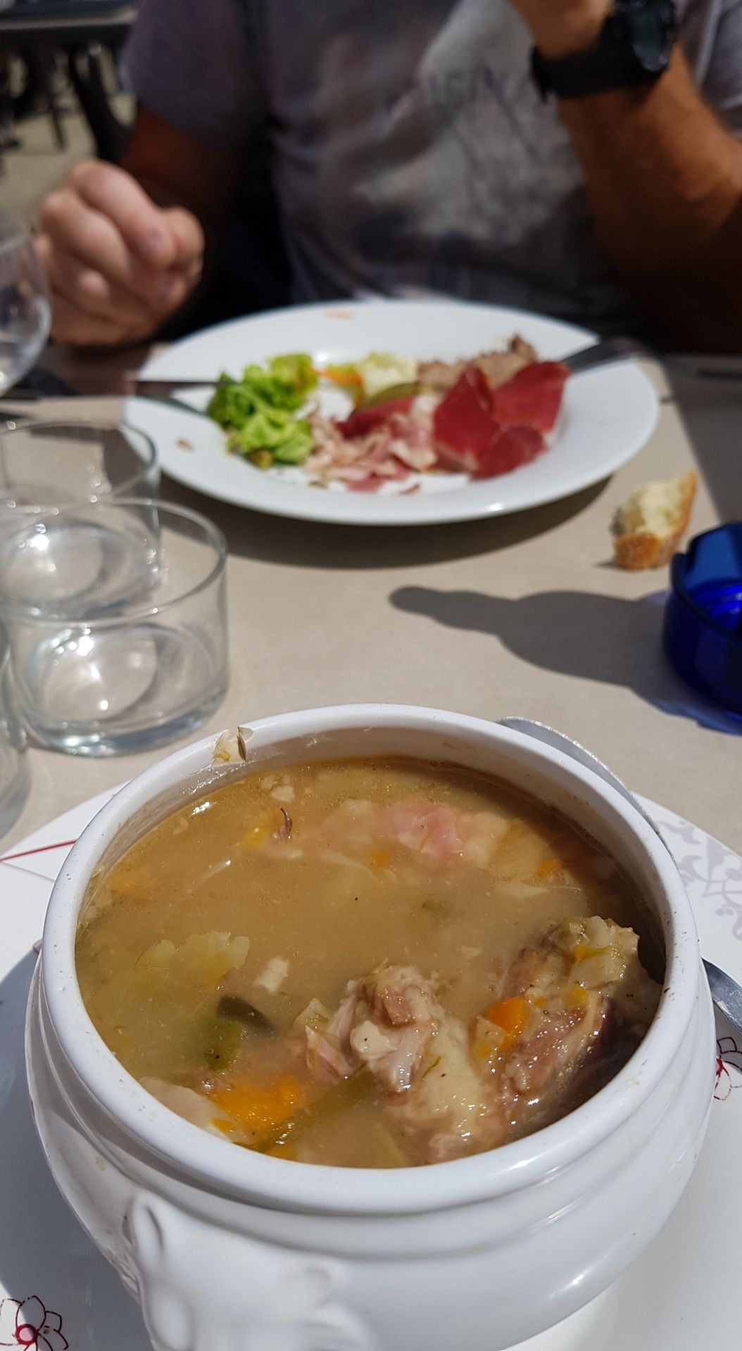 Accueil chaleureux , mais très déçue , je n'ai pas pu manger la garbure , mythique soupe des Pyrénées, qui était passée au journal du 13 heures de notre regretté jean Pierre Pernaut et j'ai même appris aujourd'hui que les propriétaires connaissait les beaux parents de notre Cher Président Mr macron , et que les gens que j'ai rencontré m'ont même dît que depuis les prix avaient bien augmenté , et bien figurez vous que c'est bien vrai , car 1 apéritif, 1 demi , 2 steaks hachés frites , et les frites huileuse une huile pas fraîche , 1/2 bouteille de vin rouge , 1 glace 2 boules ..59€ je peux vous dire que je ne suis pas prête de revenir dans cet endroit....