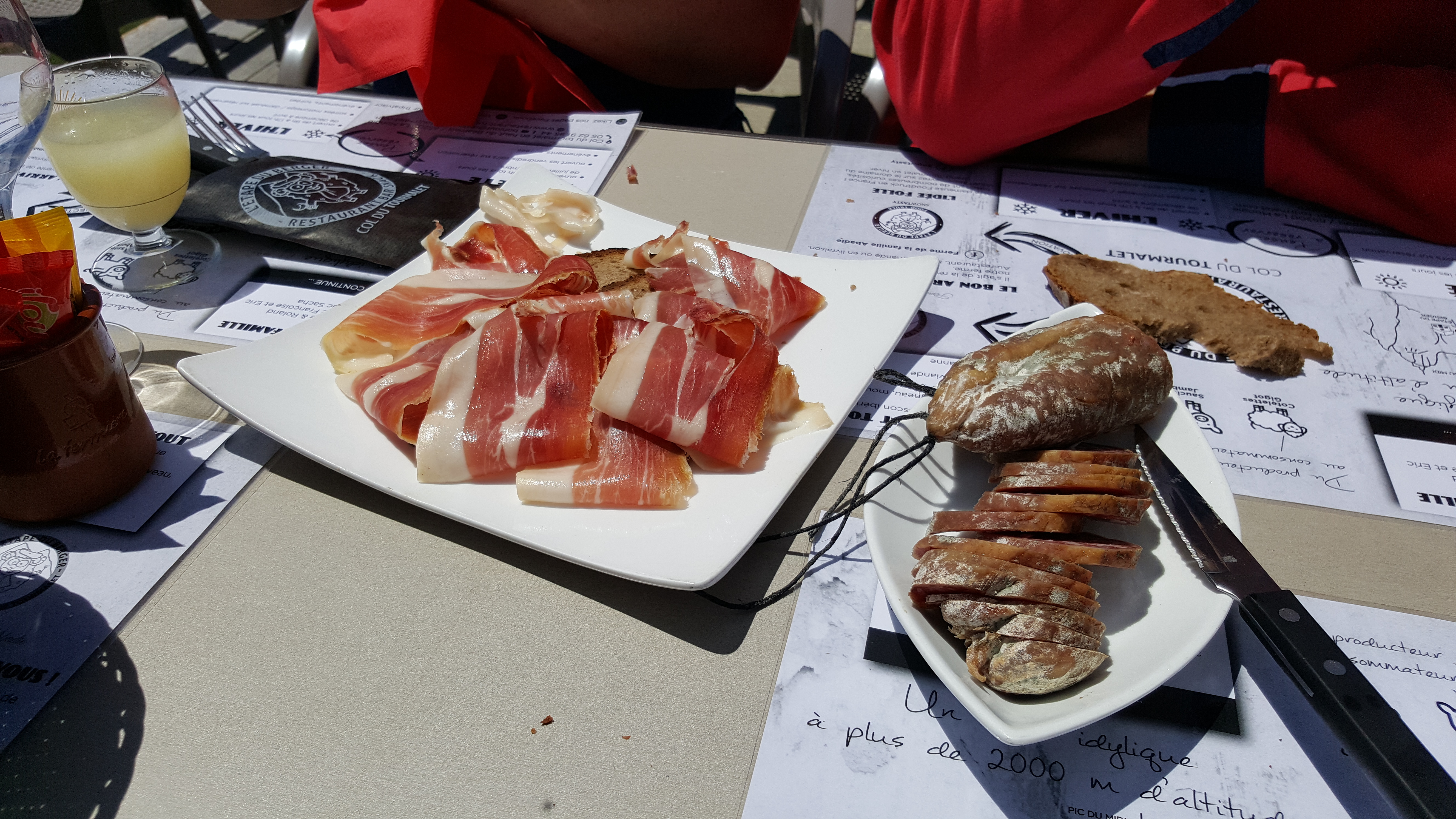 Nous avons renoncé à grimper au Col du Tourmalet à vélo – trop dur pour nous ! Mais en fait, l’épreuve s’est révélée être « l’étape du Berger ». Avant même d’arriver, pression téléphonique pour arriver à midi, en raison d’un « deuxième service » … qui ne s’est pas matérialisé. Un menu spécial 15 août… dont déjà à midi il manquait deux plats. Un service désinvolte voire désagréable qui semble prendre le client pour une chèvre à traire. Bouteille de vin servie débouchée. Plats et dessert sans intérêt. Pour être honnête : une excellente charcuterie. Et une vue bien sûr splendide.