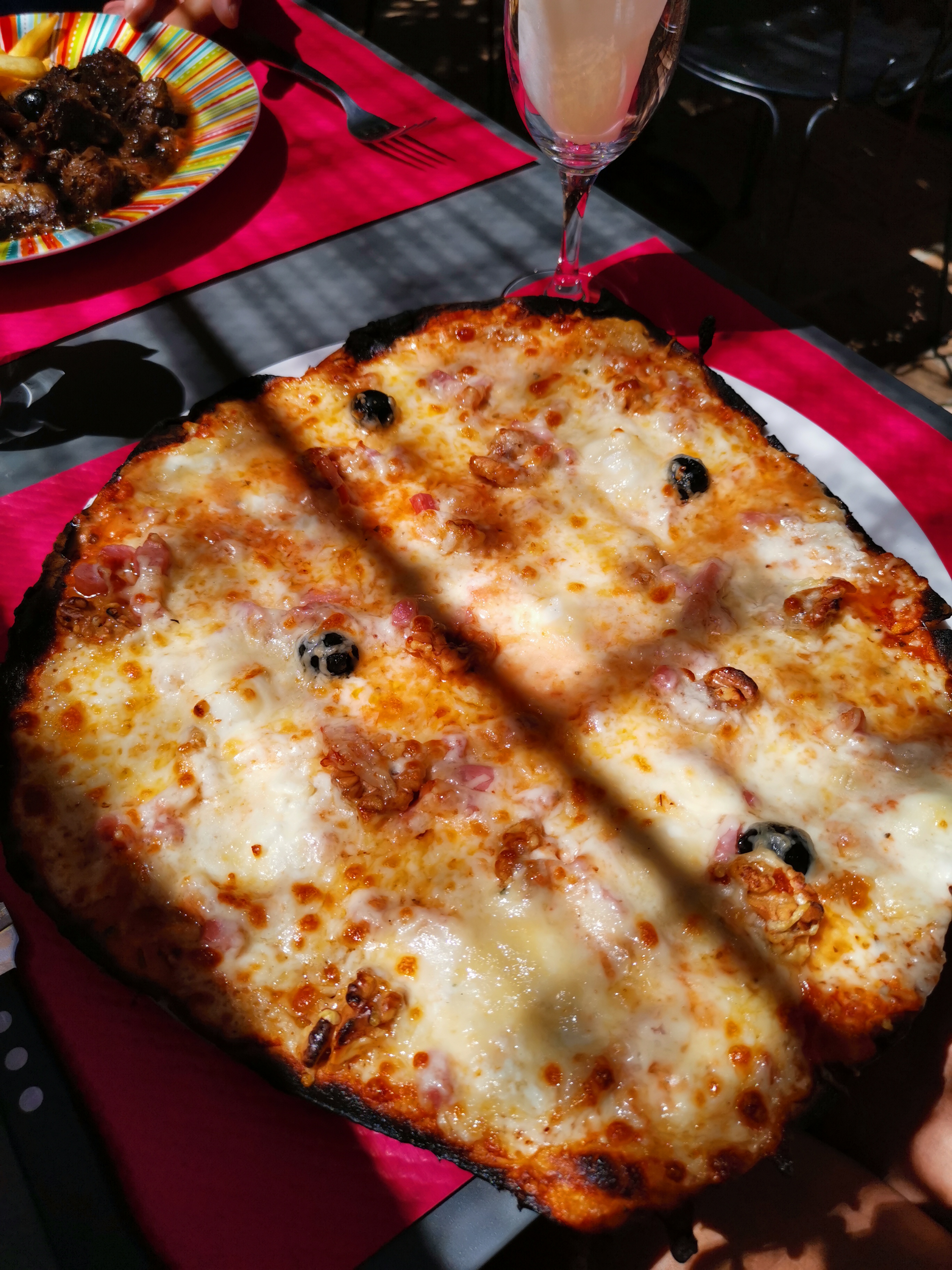 Dès pizzas fine et bien garnis, de qualité. La patronne est super sympa à l'accent espagnol, la terrasse au fond du resto est belle , ombragé, un voyage entre l'Italie et la Espagne !