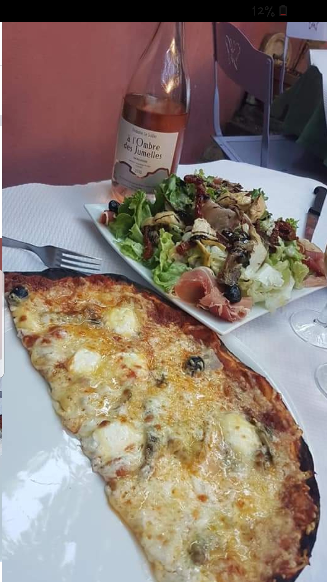 Bon restaurant dans une ambiance de village très sympathique Personnel très accueillant et compréhensif Notre verre de vin s est renversé dans la pizza (notre chien à fait bouger la table) . Elle a été refaite et non comptée sur l addition ! Juste un peu déçu de la salade Pélardon Je m attendais à un vrai Pélardon des Cévennes Mais à part cela nous recommandons cette adresse ! Merci à l équipe ! 🙂