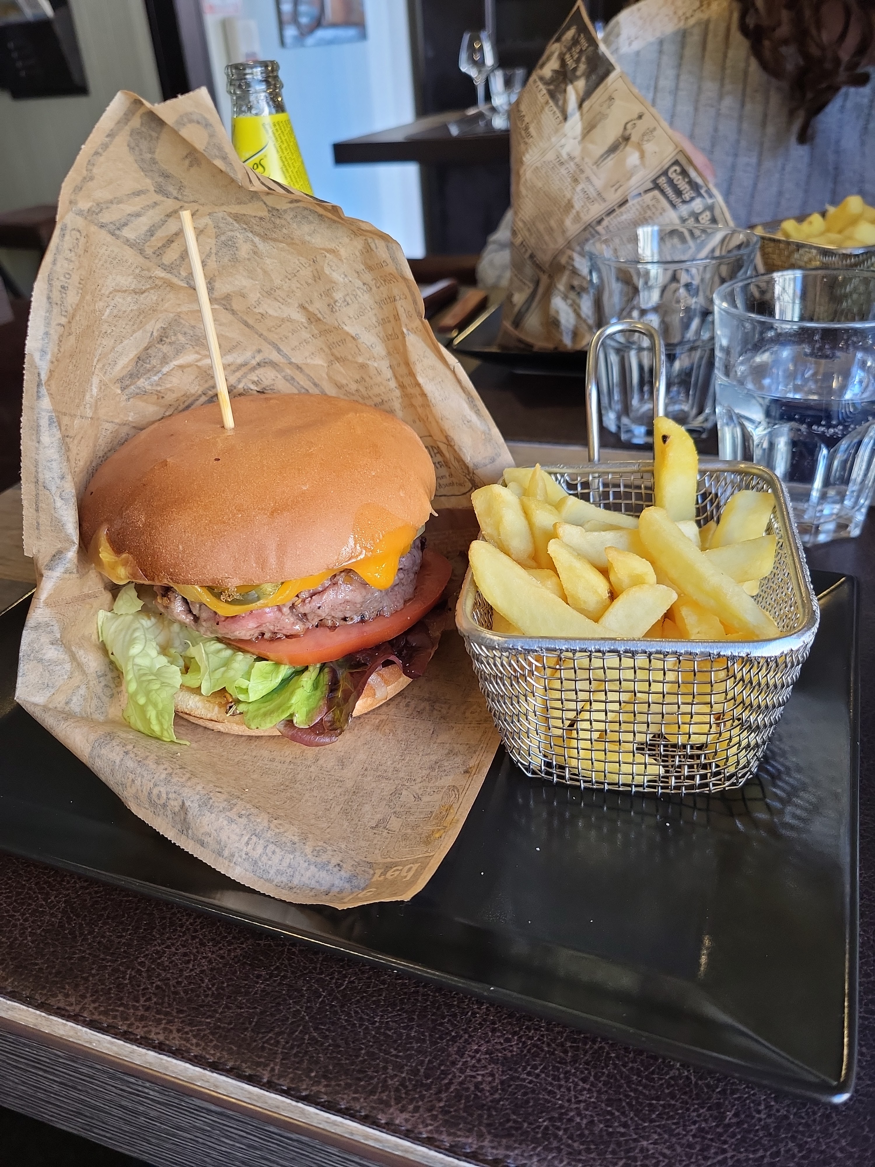Envie de burger 🍔 n'hésitez pas. Bon, savoureux et copieux. Environ 18e avec une bière ou 1 verre de vin 🍷 à refaire. Une étoile de plus pour la serveuse.