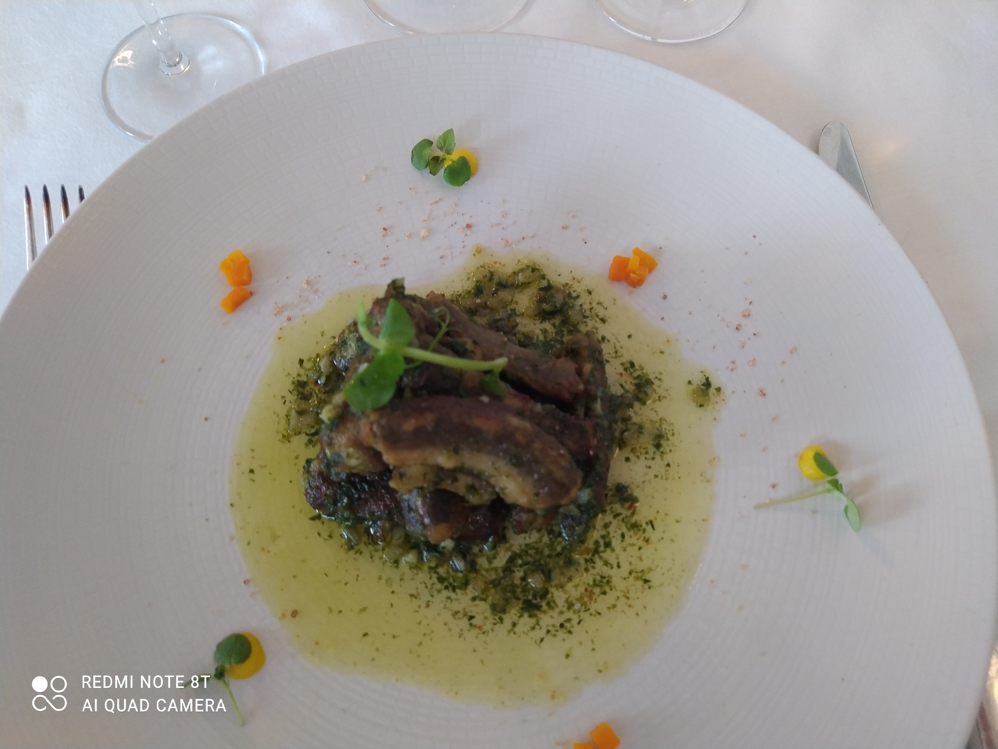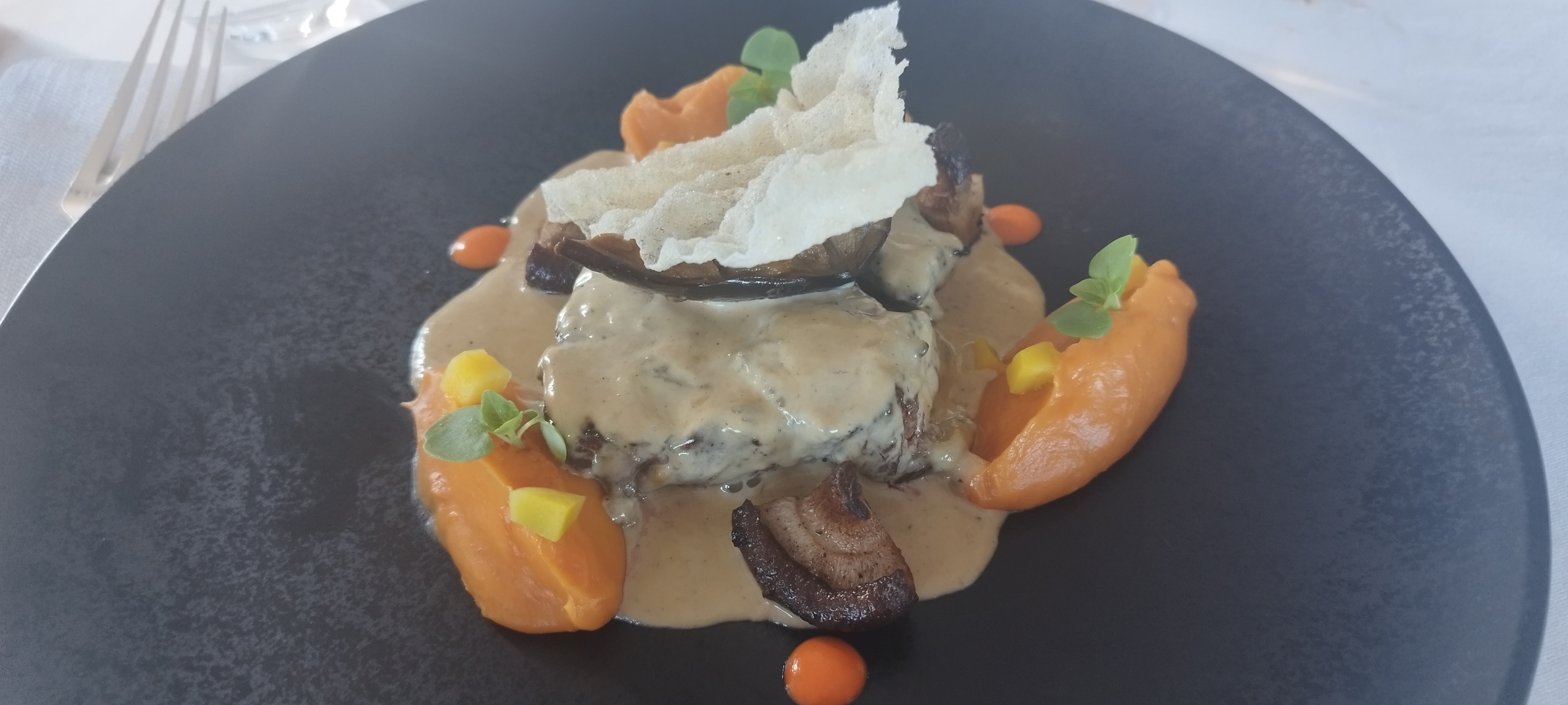 Très joli décor pour un merveilleux moment partagé à 2. La véranda offre 1 superbe vue. Les assiettes sont très travaillées joliment décorées voir artistiques. Le pop corn apero salé au cumin une belle surprise ! La note est en conséquence mais on ne vit qu'1 fois.