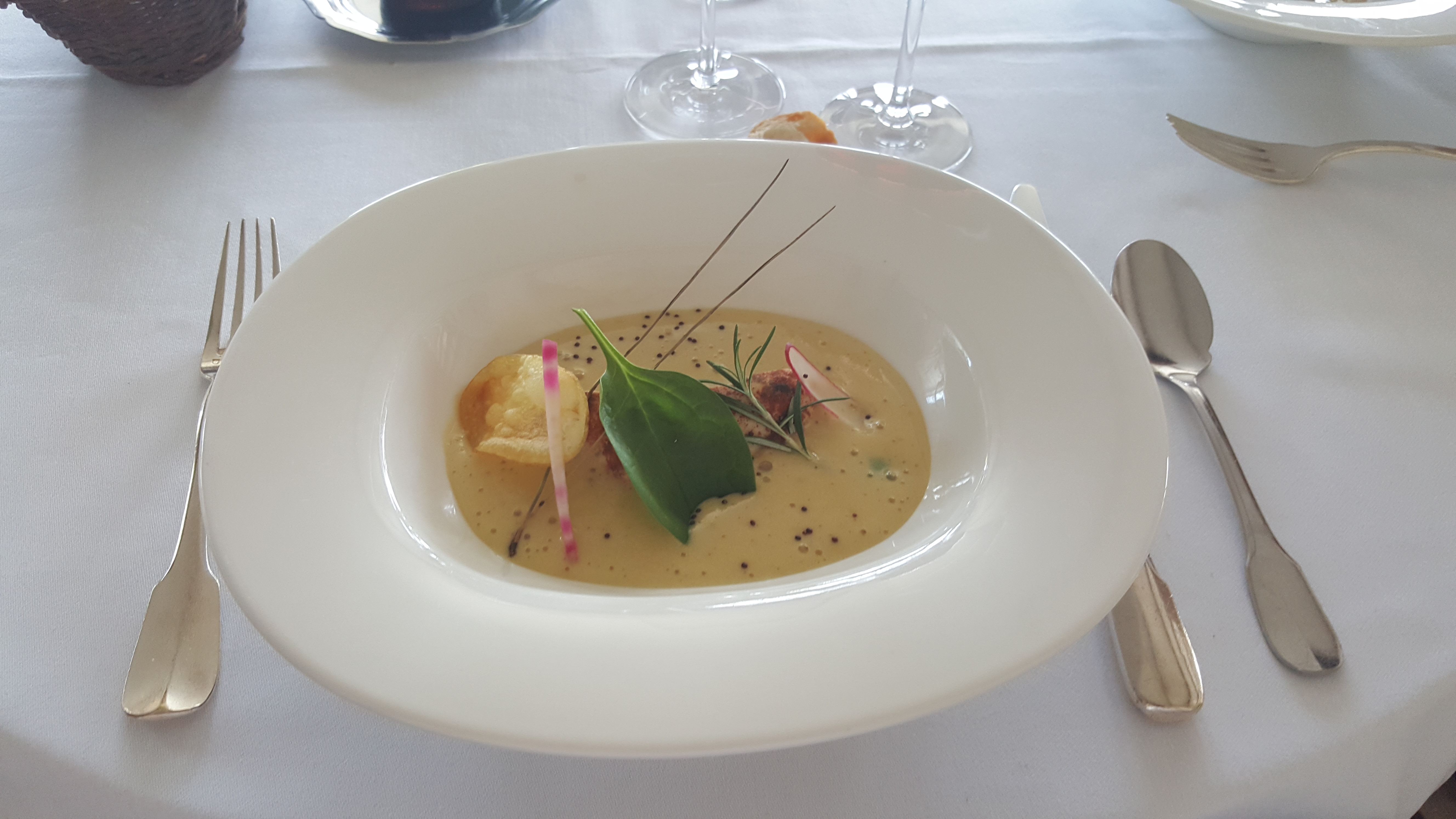 Super restaurant, cuisine fine et délicate. De belles cuissons, un léger manque d’assaisonnement sur tout les plats, surtout que vous avez pas mal de sel autour c’est dommage, mais cela se rectifie rapidement par la présence de fleur de sel sur la table, un excellent gâteau de pomme de terre en dessert. Un conseil, n’acceptez plus les enfants en bas âges svp, l’expérience est gâchée par les cris et nous ne sommes pas là pour subir pendant notre déjeuner.
