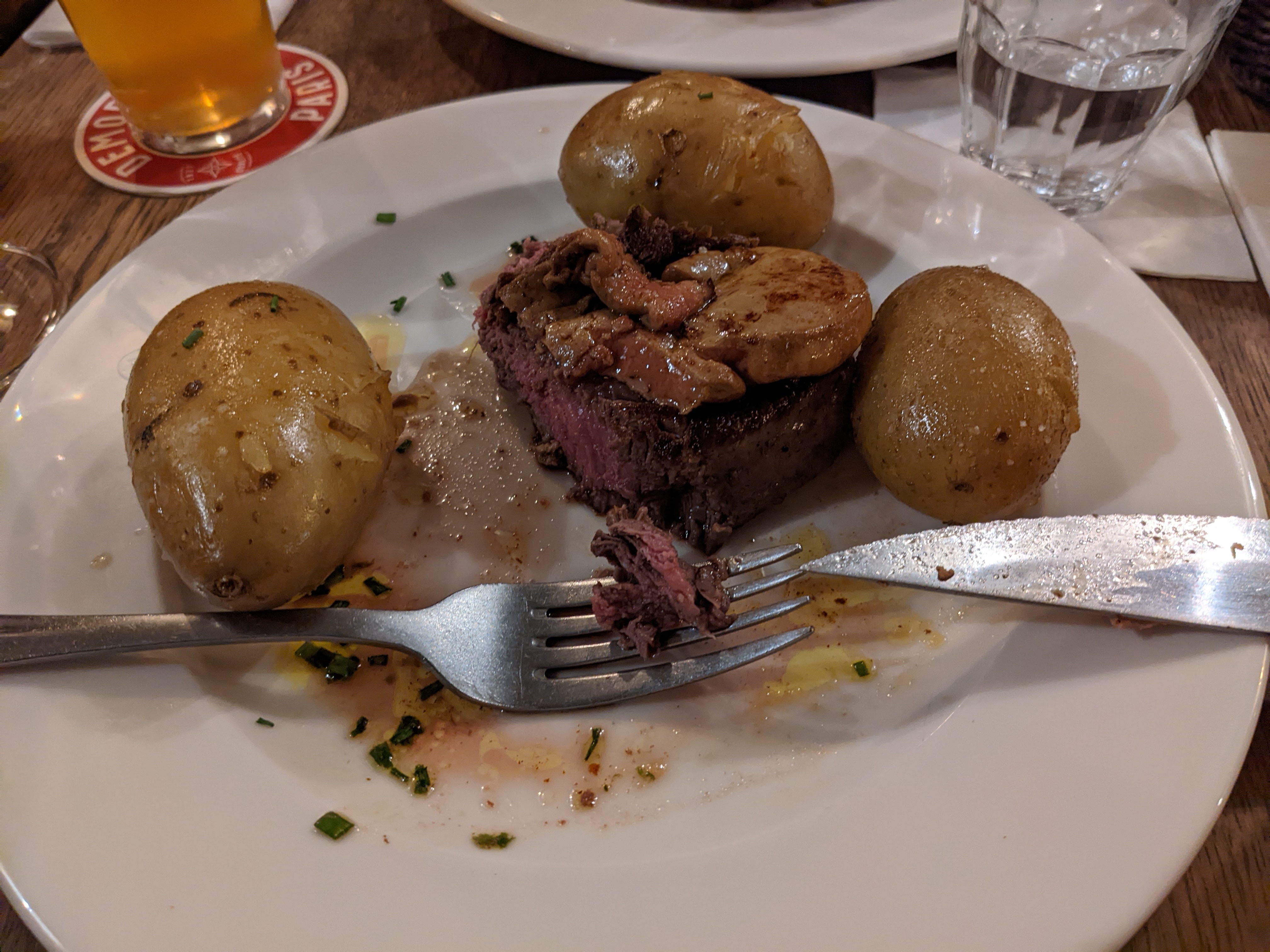 Très correct par contre très surpris par l addition. Le vin en carafe plus cher que l onglet (23 € le pichet et non précisé sur le menu)) demander absolument les tarifs des vins !!!