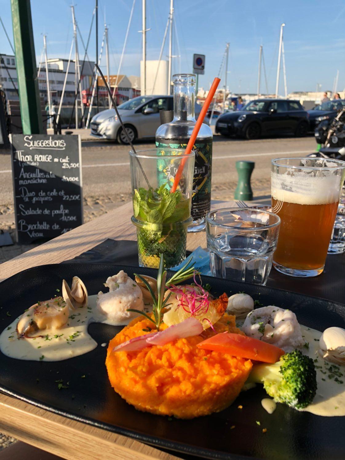 Resto sur le port des Sables Le plus sympa Accueil sympathique et professionnel de la Serveuse Le patron connaît ses clients majoritairement locaux Menu à 23,50 € superbe