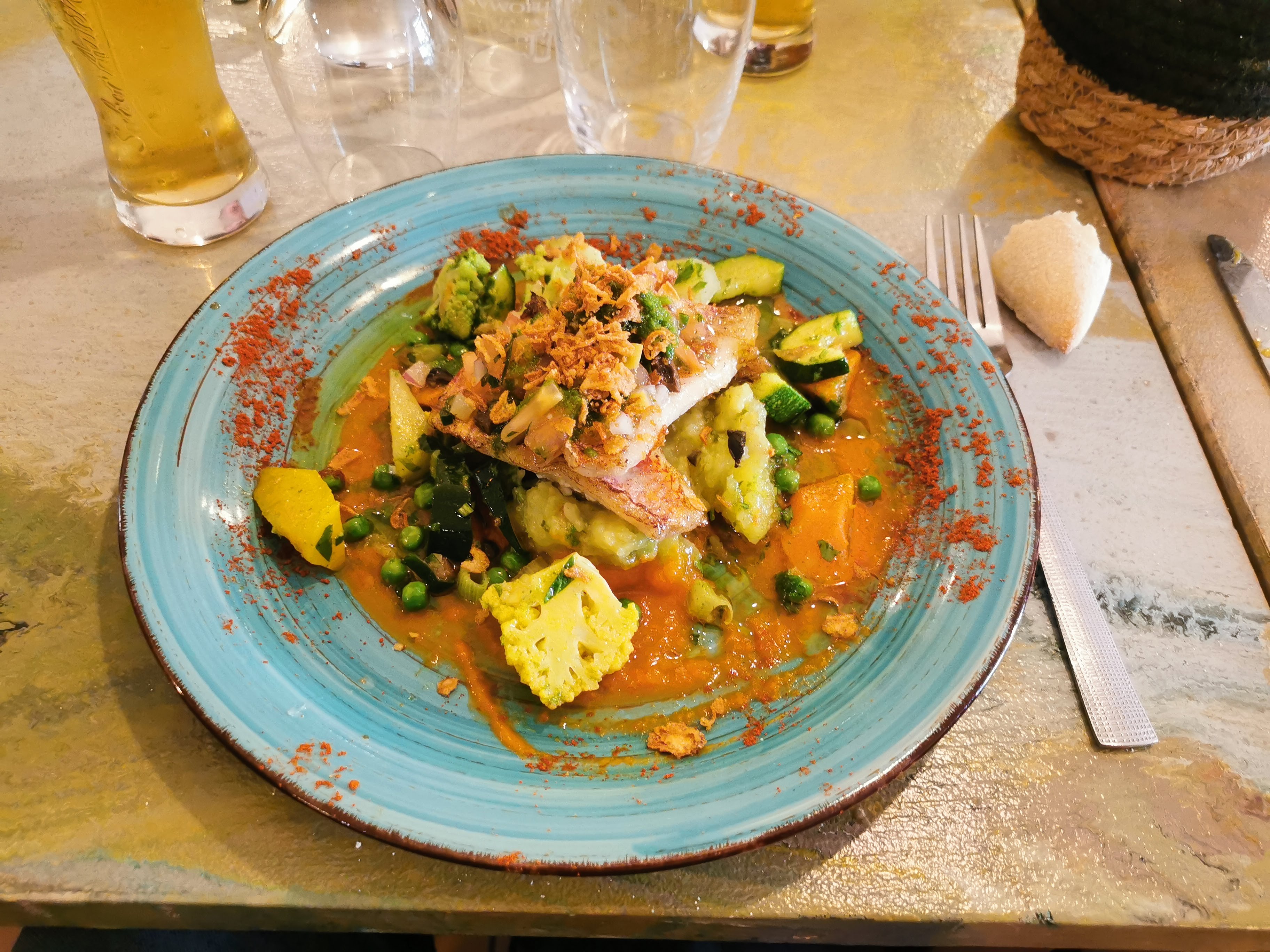 Début de saison, service en rodage mais cuisine au top. Les filets de rougets sont délicieux mais un peu perdus dans l'accompagnement somptueux de légumes de saison. Très bon rapport qualité-prix.