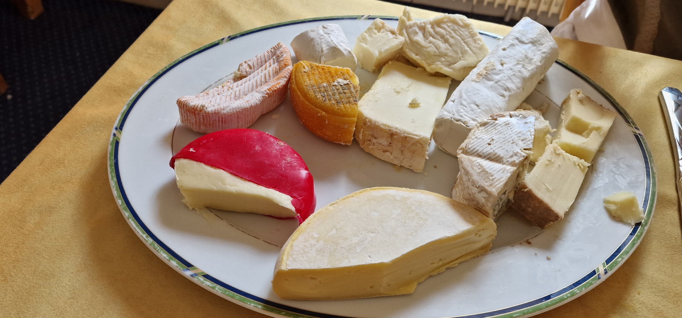 le premier repas a la carte repas ordinaire entrée /plat/fromage/dessert/café 26 € quand même !!!! plateau de fromage parfait établissement a rafraîchir le sol laisse a désirer vaut mieux s'arrêter a Corgenon au Bouchon Bressan bien mieux et moins chère