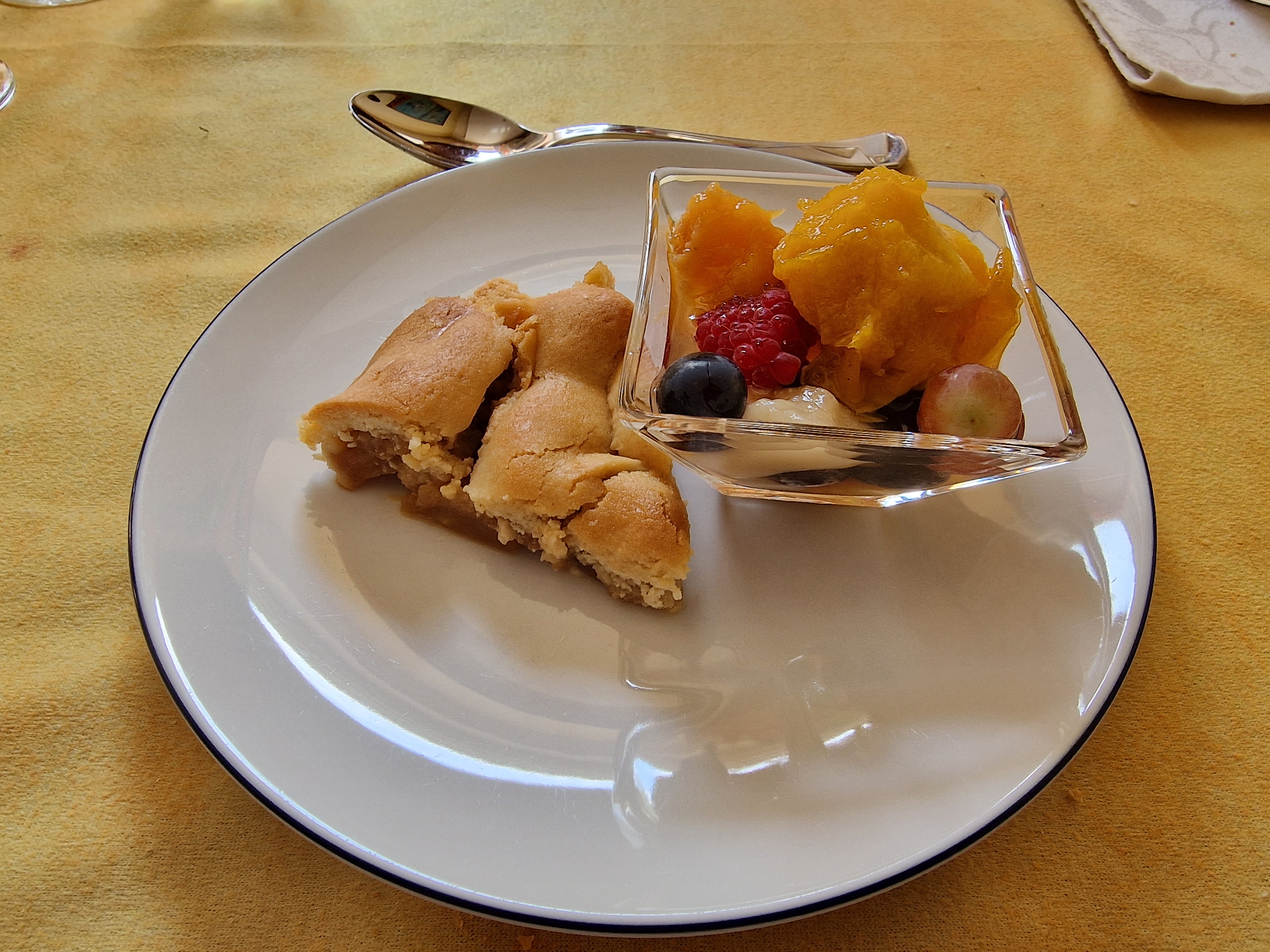 Une entrée copieuse, un plat traditionnel, un plateau de fromages à volonté, un dessert composé de 3 portions, le 1/4 de vin et le café, le tout pour 13€ y compris le service attentionné ... je ne savais que celà était possible ! Vaut le détour.