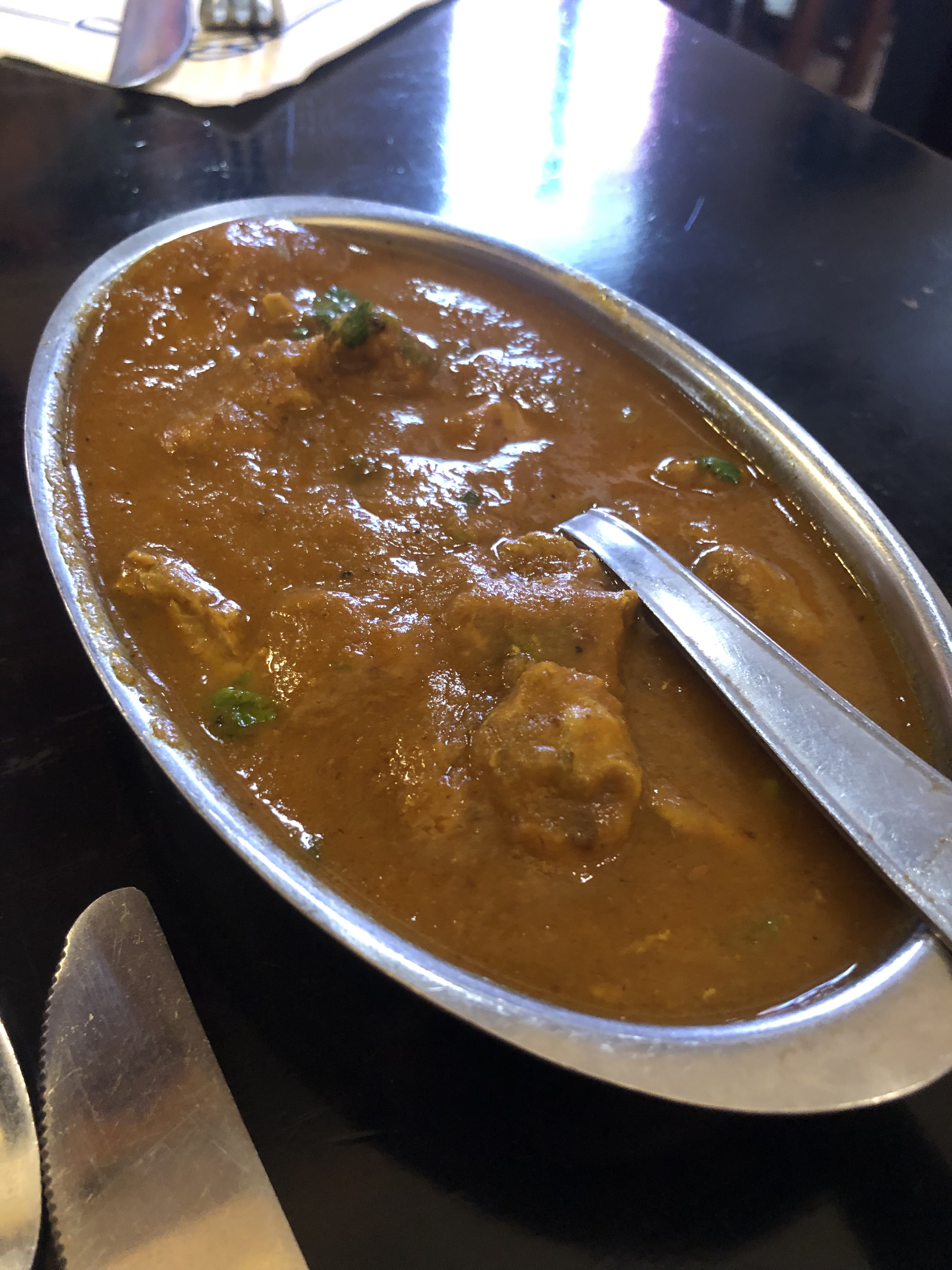 Poulet tandoori savoureux mais un peu déçu par les assortiments du thali avec finalement peu de diversité entre les différentes sauces agneau, crevettes, poulet, lentilles et manque d'authenticité car pas pimentées. Accueil correct, prix correct.