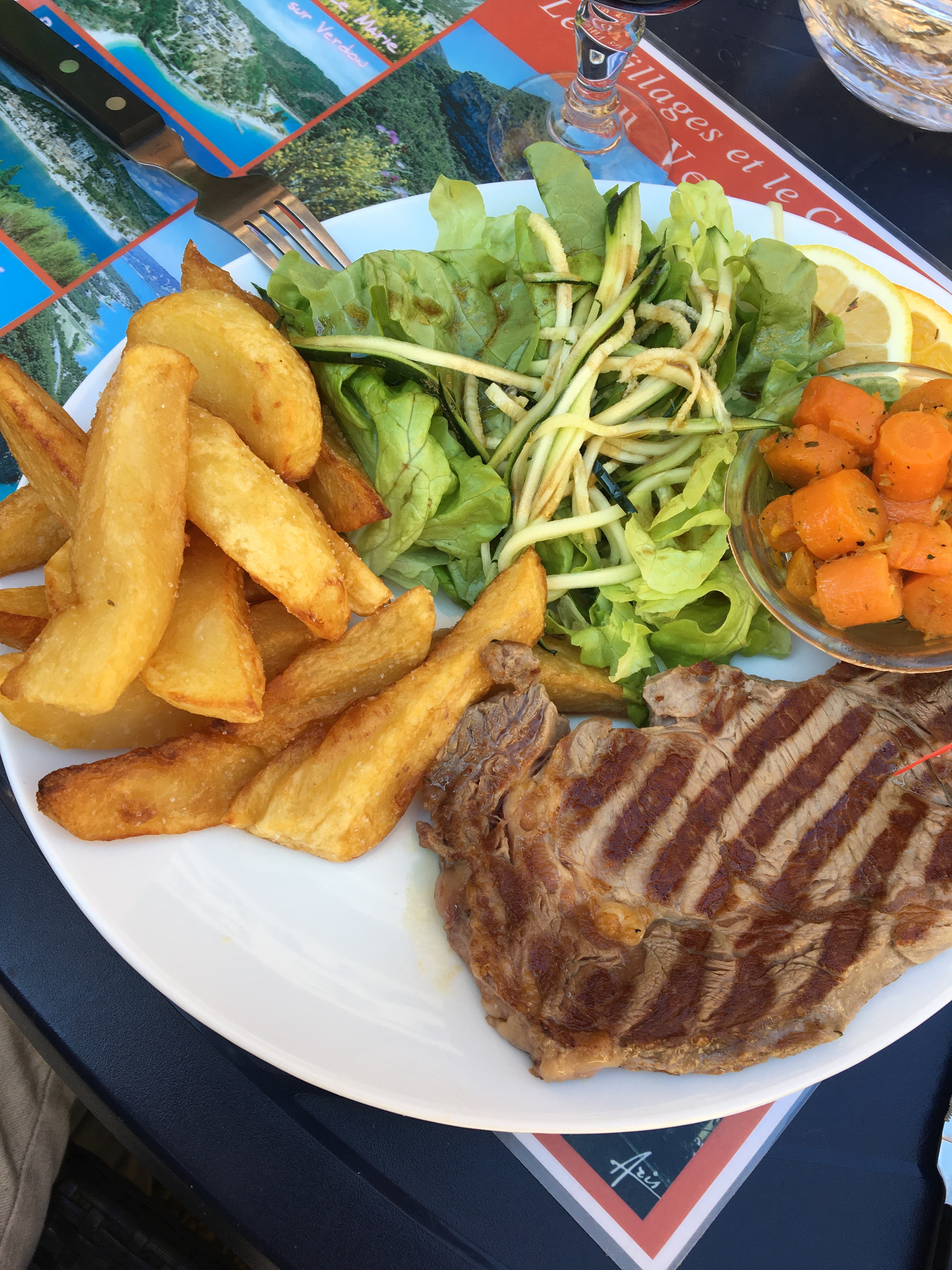 En visite à Moustiers-Sainte-Marie, nous nous sommes arrêtés dans ce restaurant. Cuisine simple, frites maison, correct pour le prix.