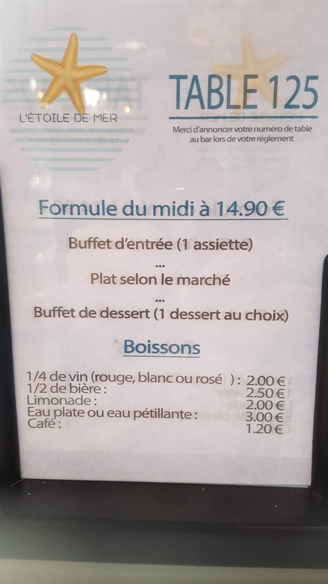 Bonne cuisine, choix de 4 plats frais Tarifs très abordables.