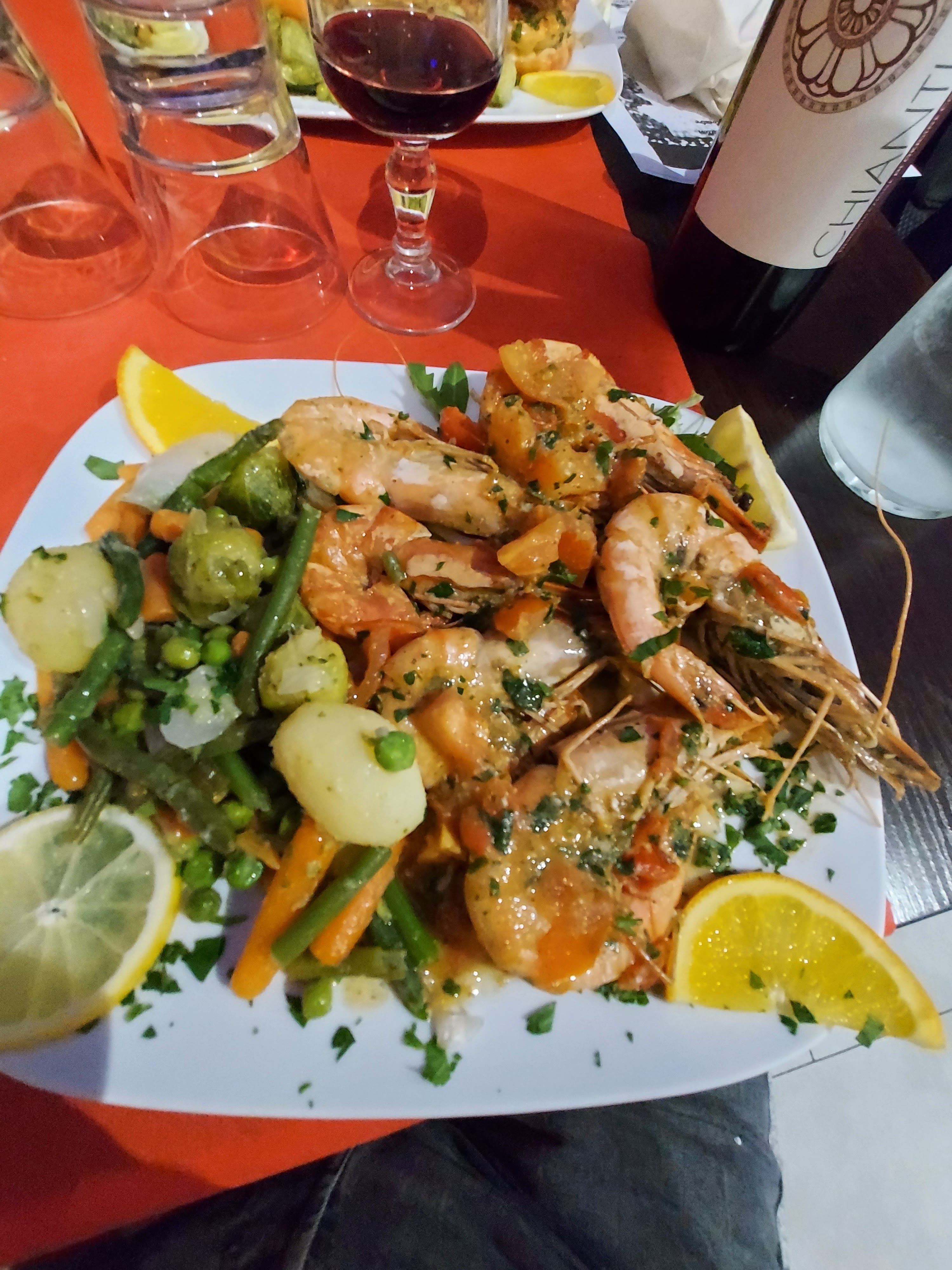 Portions généreuses et prix raisonnable. Nous avons dîné sur la terrasse qui était bien. L'intérieur mériterait cependant d'être mis à jour. Le propriétaire était très sympathique. Nous avons très bien été servi. Les moules provençales étaient délicieuses. Je les recommande chaudement!