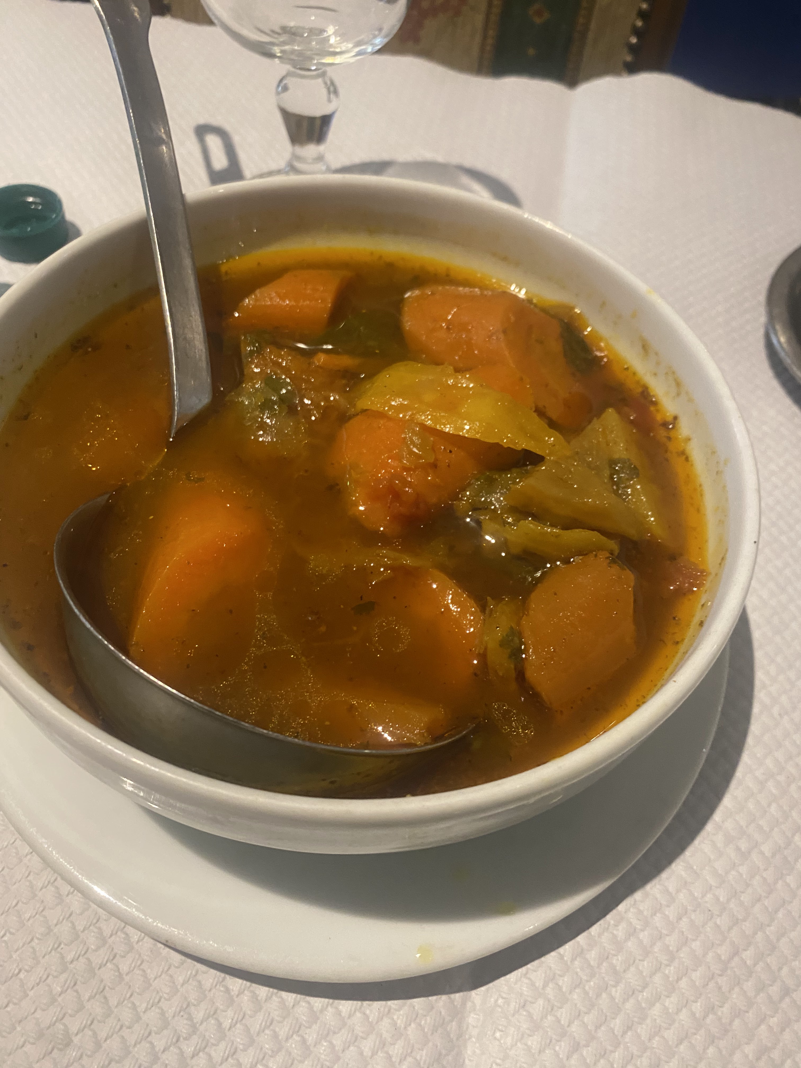 Nous avons été déçus tout les deux, le couscous est..... passable.... le bouillon de légumes est fade et transparent, pas assez d'épices et d'aromates. Les ingrédients sont frais pourtant, viandes comme légumes. Le service correct, et le prix bien sûr est trop élevé compte tenu de la déception. Nous n'y retournerons pas.
