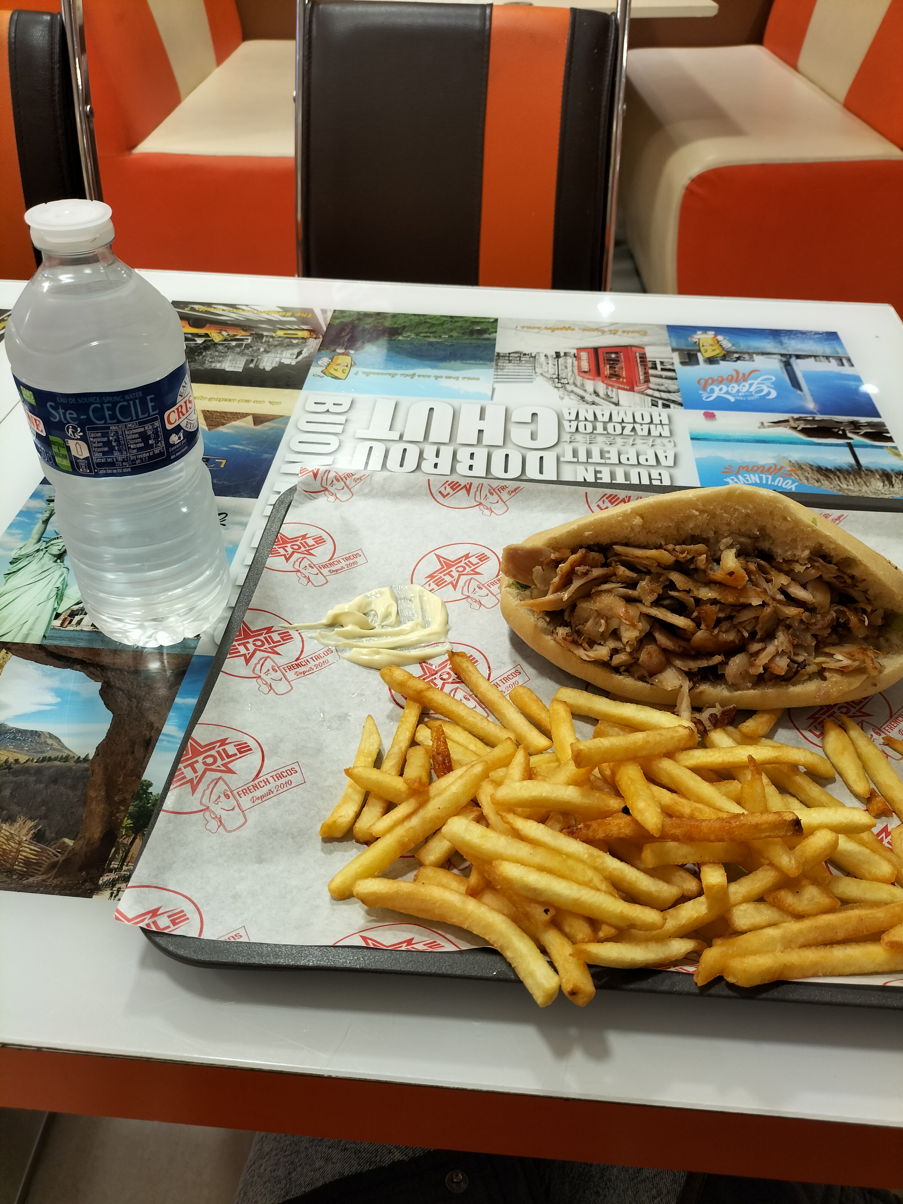Bonjour à tous, Ça fait déjà plusieurs fois que je mange ici et je dois bien l’avouer je reviens malgré le sport et le régime. Les employés sont accueillants, très rapide et à votre écoutent. J’ai goûter Tacos et Kebab avec le pain classique et je dois avouer que ce dernier me plaît particulièrement. Ça me rappel l’époque de l’école où il n’existait pas tout ces dérivé, en bref c’est excellent. Mais si les cinq étoiles n’y sont pas, c’est pour une seul et unique raison, mais qui a son importance étant donné qu’elle fait parti d’à peut près tous les menus. Les frites, en tout cas en emporter, sont souvent molles et j’avoue préféré d’avantage le croquant et je n’ai pas la chance de l’avoir, sur place je ne sais pas ! Si il est possible qu’ils trouvent la solution, les cinq étoiles seront bien et belle là ! En bref, allez y sans hésiter, je vous souhaite un bon appétit.