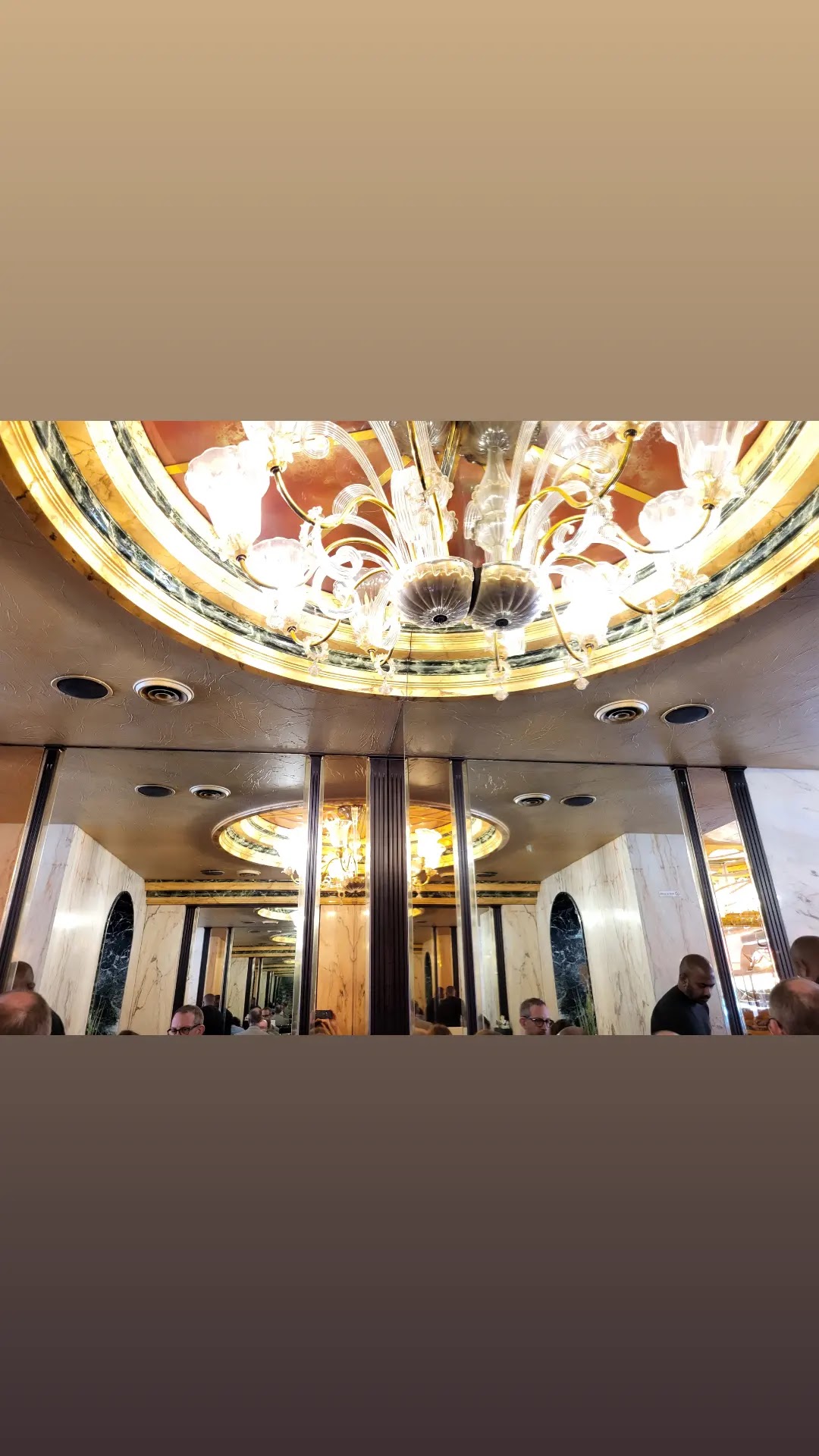 ❝ Café-restaurant français orné d'un grand lustre doré et d'une fresque représentant Venise sur un miroir. ❞