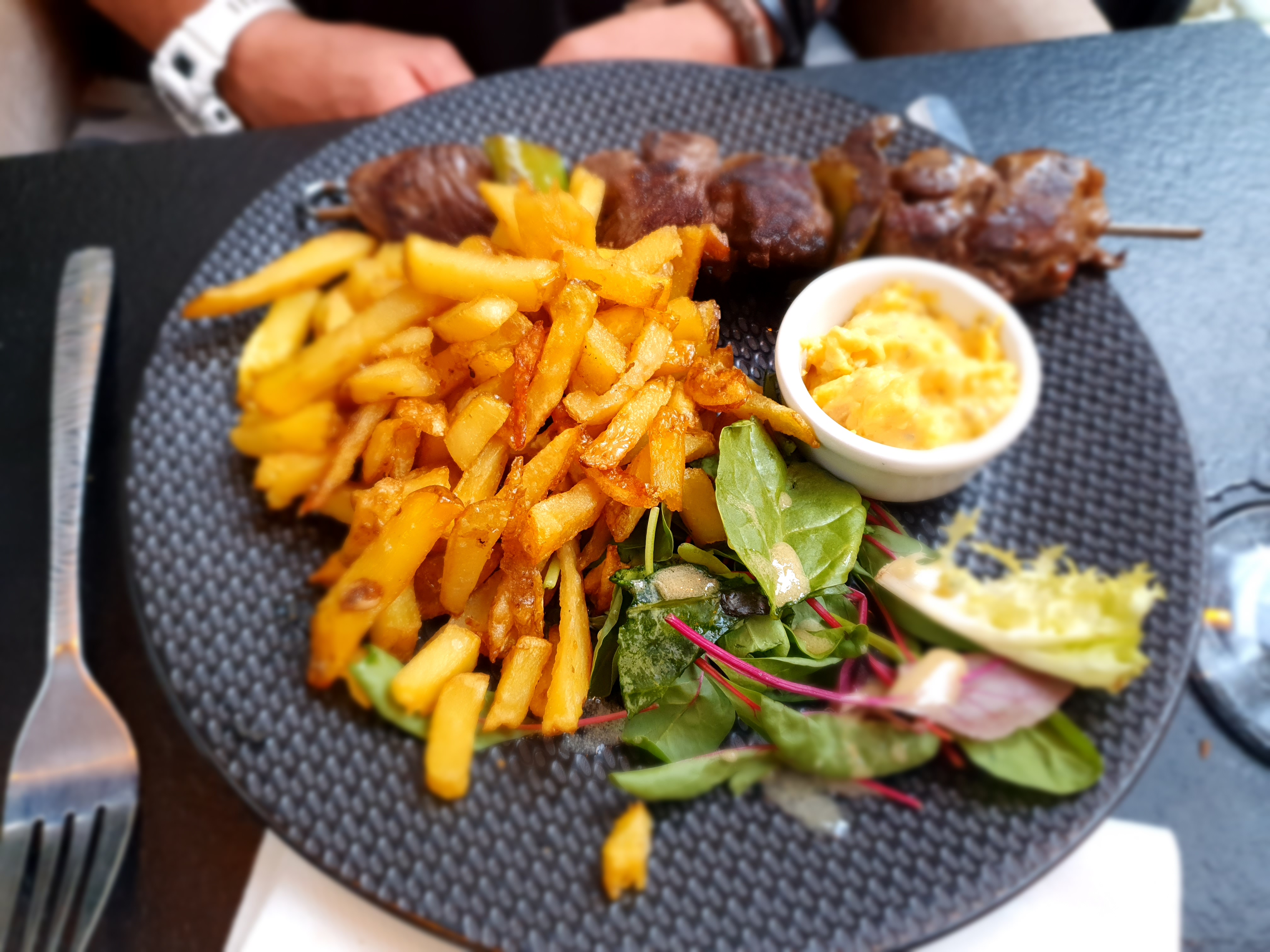 De l'extérieur, nous n'aurions jamais deviné cette terrasse juste magnifique (ils l'ont agrandi depuis peu), entourée des immeubles en pierre (à 2 pas de la cathédrale, dont on aperçoit le clocher). Le cadre est beau, la cuisine est parfaite (c'est bien la première fois que je mange des moules au roquefort avec de la vraie crème et non coupée à l'eau). Serveur au top, et ambiance sonore feutrée. Rien à redire sauf allez y !! (et réservez 😉).
