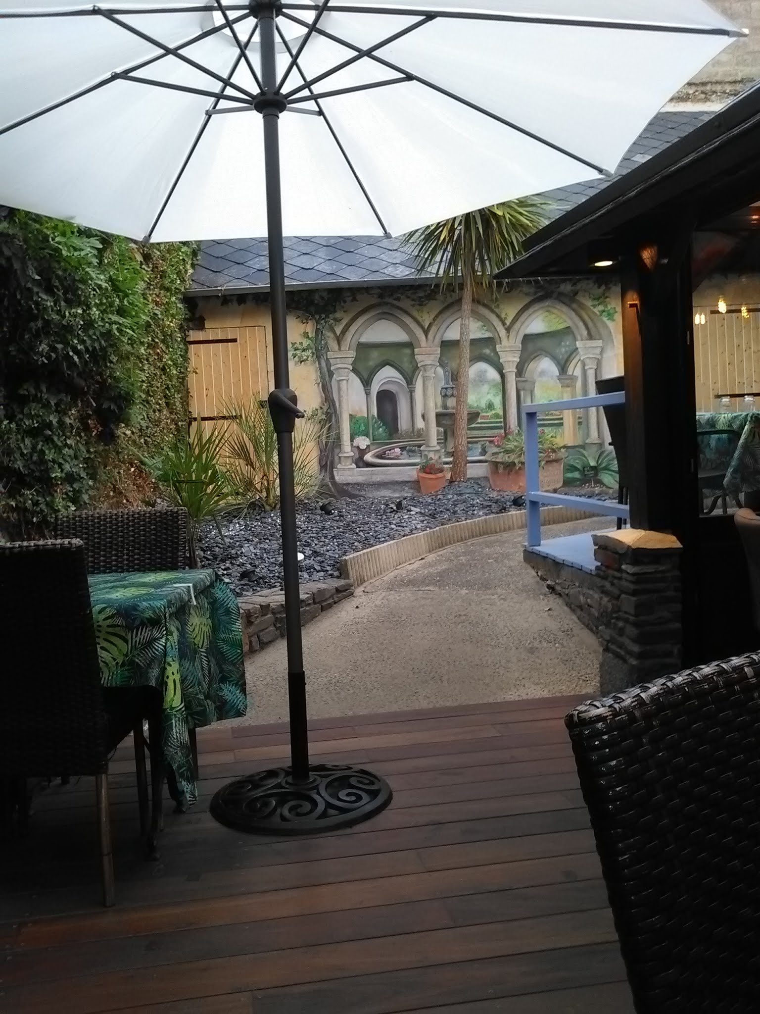 Beau jardin et belle décoration intérieure ! Assez grand pour partager et la nourriture était excellente ! On en a pour son argent ? (nous avons pris le menu) Le personnel était gentil aussi ! Je le recommande vivement si vous visitez Dol-de-Bretagne pour la 1ère fois :-)