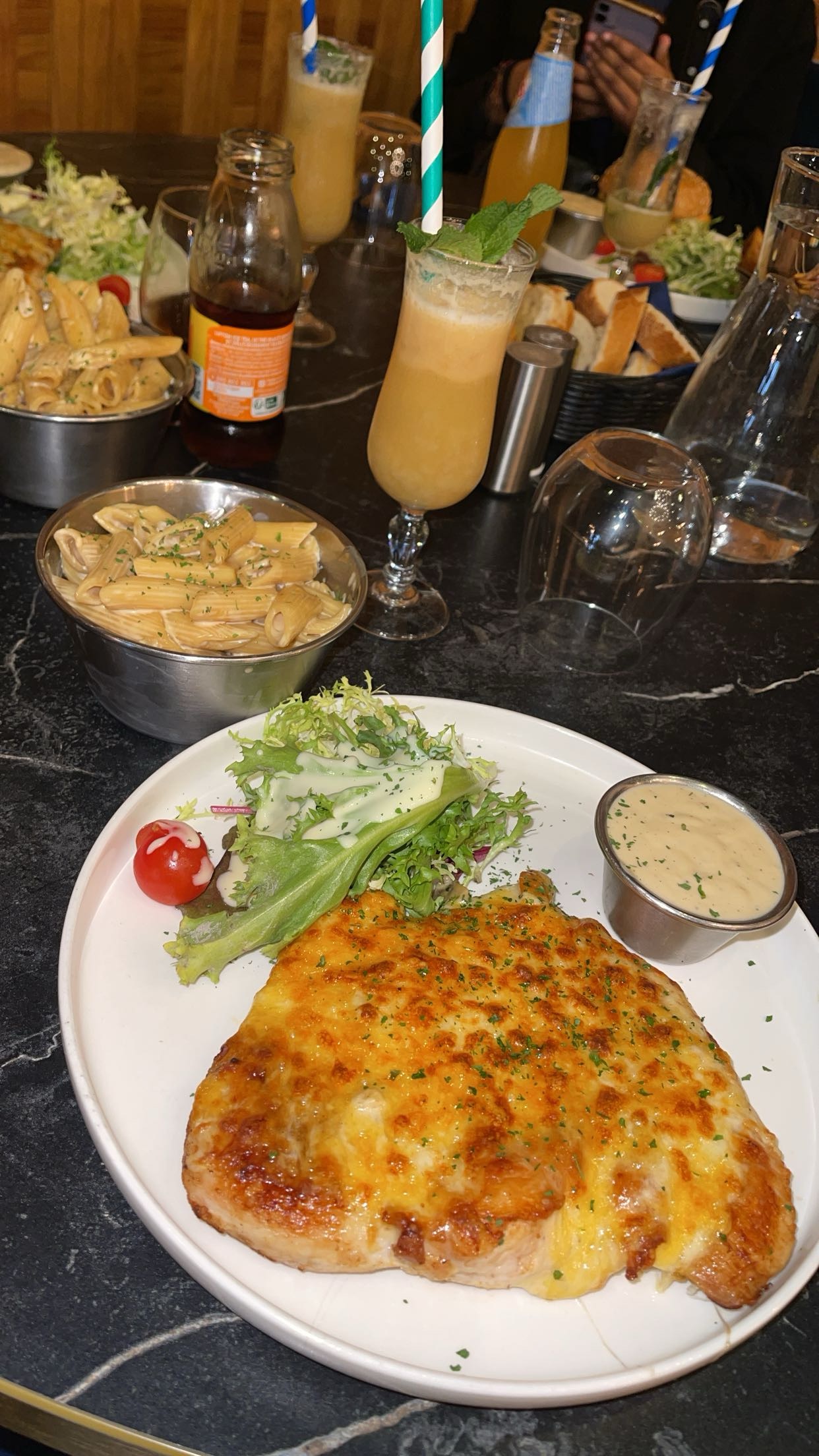Très bon accueil, belle ambiance, la salle est spacieuse et familiale. Pour les plats on a pris escalope de veau gratiné et escalope de poulets à 4 fromages c'était trop bon on a bien aimé malgré qu'ils ont pris un peu de retard pour le service On a aimé aussi les pâtes mieux que le gratin. Voir la dernière photo 😁😅