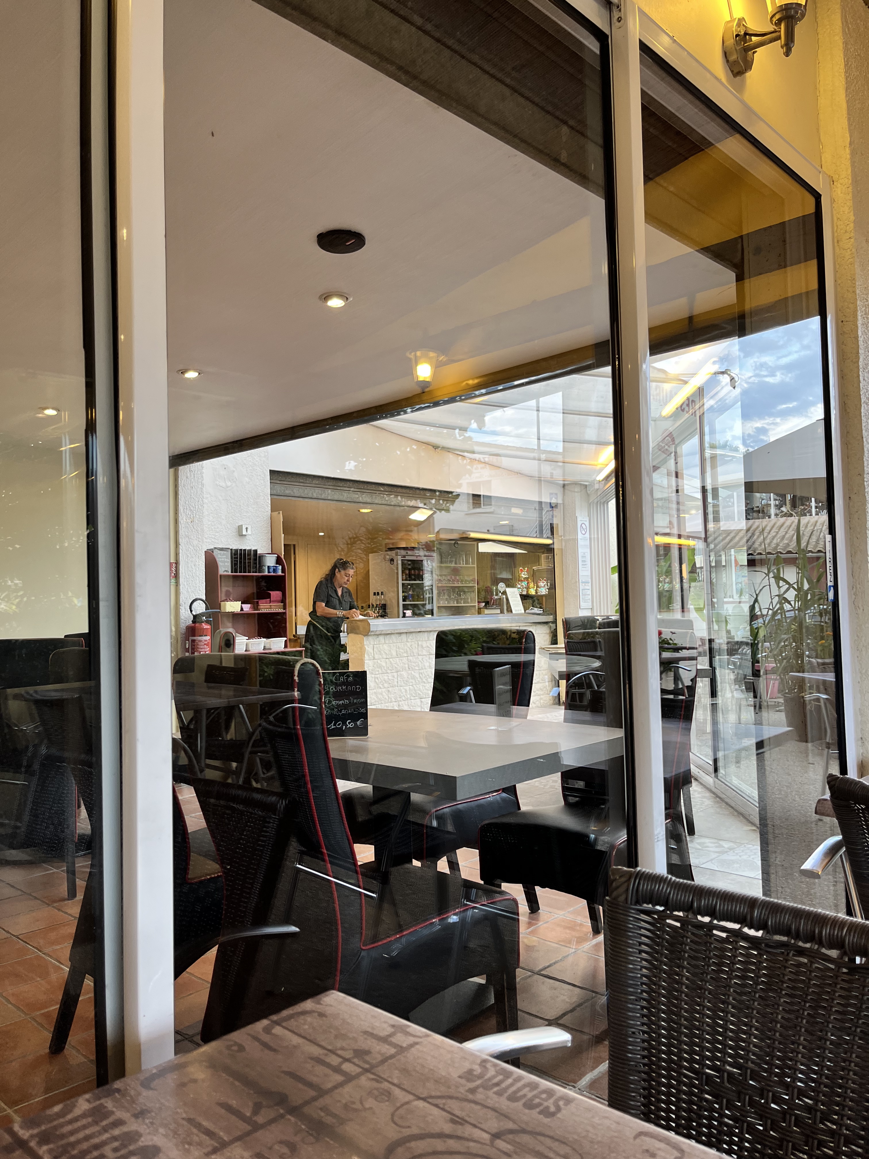 Nous avons été pris en charge à 20h30 et nous avons été servis à 22h ! La serveuse des boissons hyper rapide sauf que quand nous avons mangé l’eau pétillante c’était réchauffé e et que nous avions déjà bu notre bouteille de vin ! Sans parler de l’épisode de quelques gouttes de pluie où nous avons dû rentrer et là surprise la serveuse redresse notre table avec les setsen papier mouillés … enfin pas très satisfaits de notre soirée du coup nous avons peu apprécié les plats car c’était trop long
