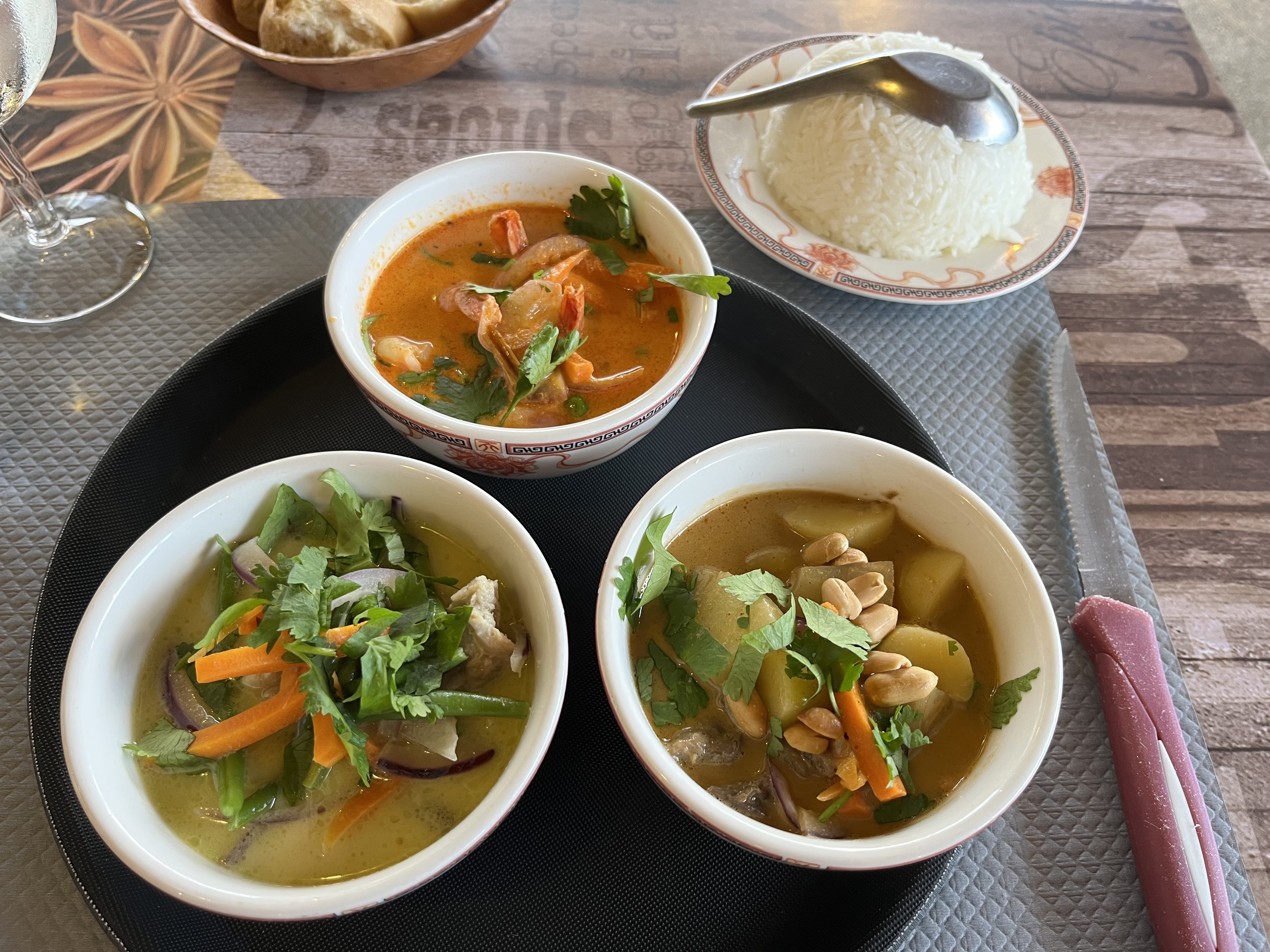 Très bonnes crevettes au curry rouge. Service rapide et agréable, cadre sympathique.