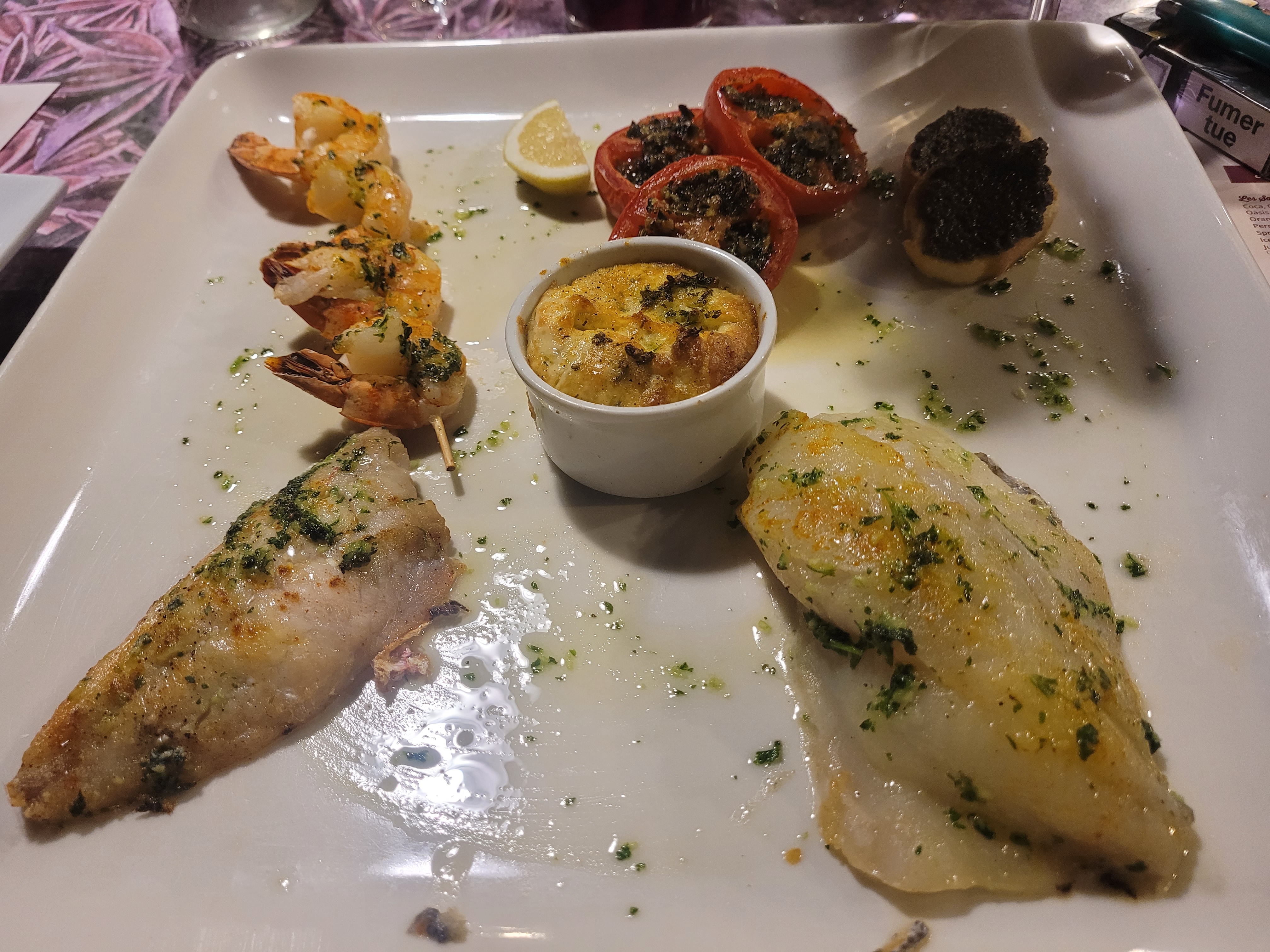 Plat l'éventail de la mer super bon.... par-contre un manque professionnalisme au niveau du service. Sinon le fait maison est ressenti et appréciable