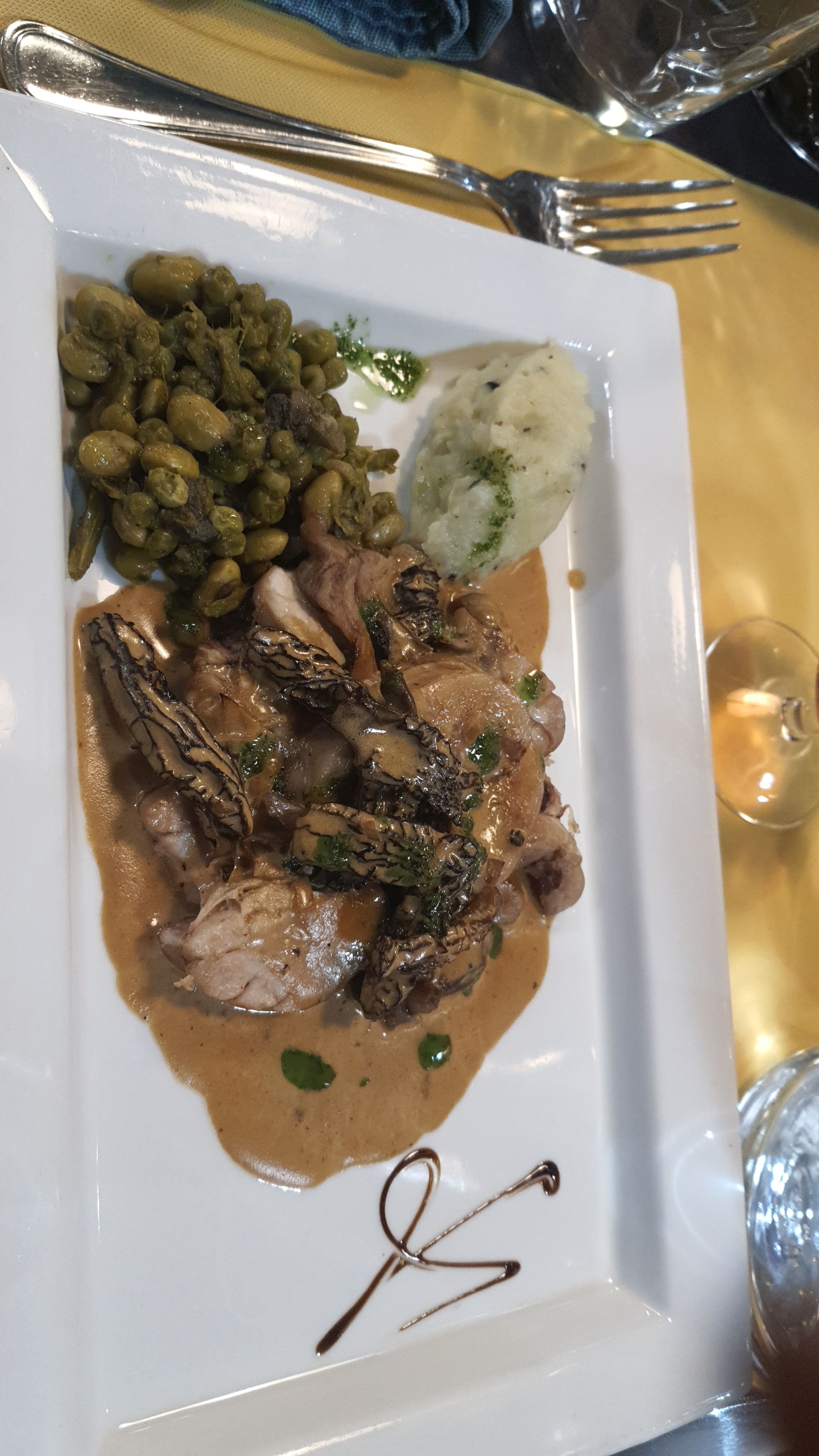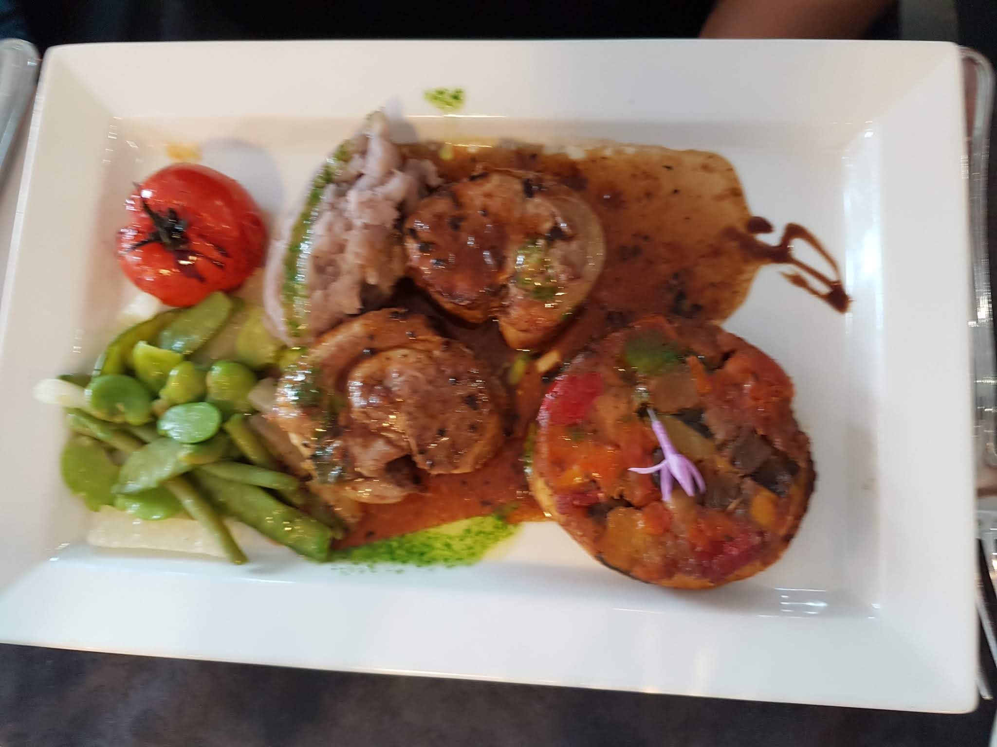 Excellent ! Le lapin, tendre, avec ses petits légumes et son écrasé de pommes de terre aux olives vertes et - je suppose- fouetté à l'huile d'olive, et le dessert à l'orange, chantilly maison, crumble imbibé de liqueur à l'orange....que dire !!!! Bravo ! Bravissimo 😀