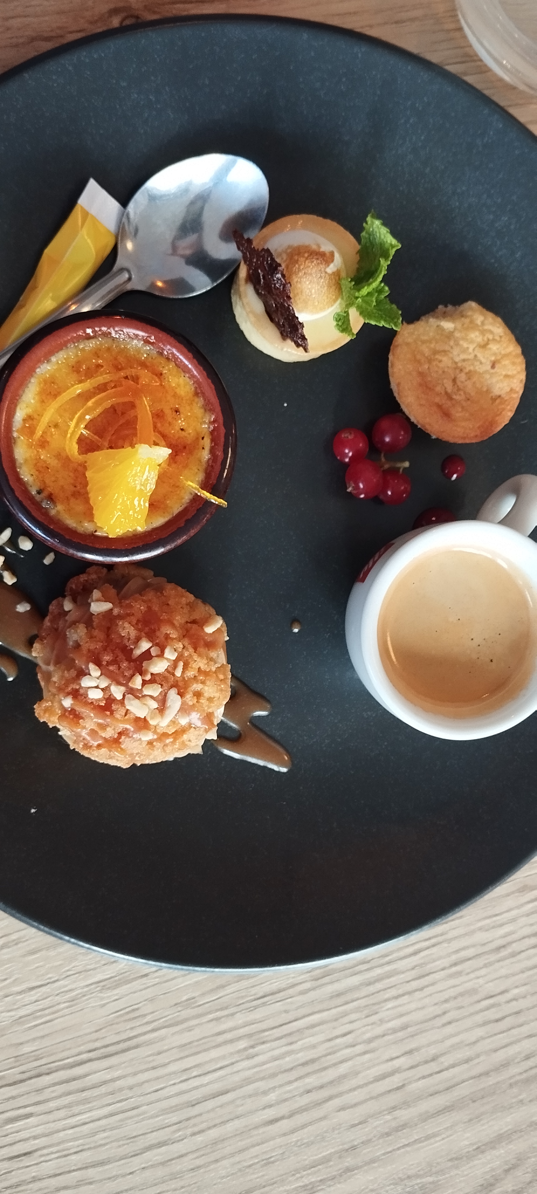 Très bon restaurant cuisine fine un reproche je demande de la crème brûlée on me sert autre chose et on me dit que la crème brûlée est à l l'intérieur c'est du n importe quoi on aurait mieux fait de me dire qu il n y en avait plus car j avais la même chose que mon mari qui avait pris un dessert au chocolat