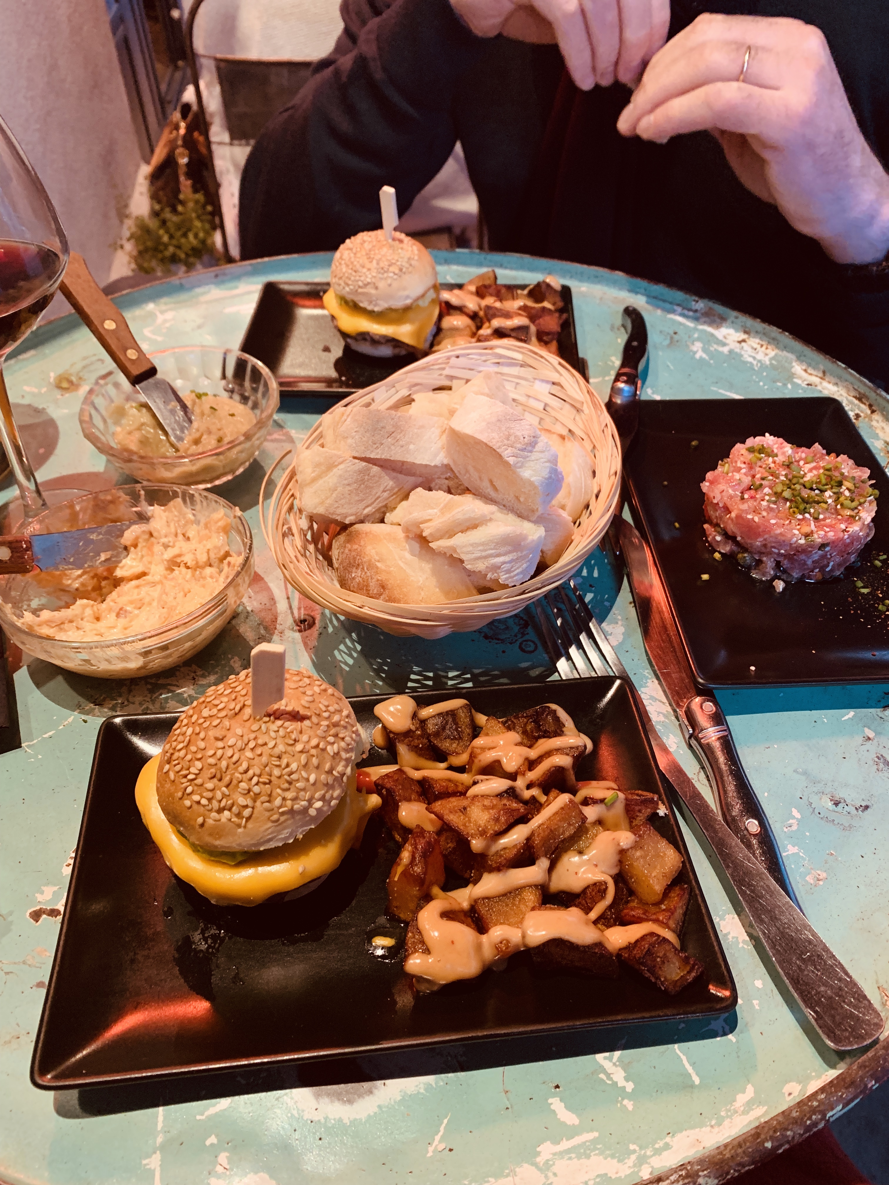 Les portions servies sont ridicules pour le prix de chaque assiette de tapas. Les produits sont totalement basiques. Ex: sentiment de se voir servir une toute petite portion de pommes de terre surgelées pour l’assiette de patatas bravas. Le choix des vins est médiocre. C’est globalement très cher pour ce que c’est. Je n’y retournerai pas. L’accueil est convenable.