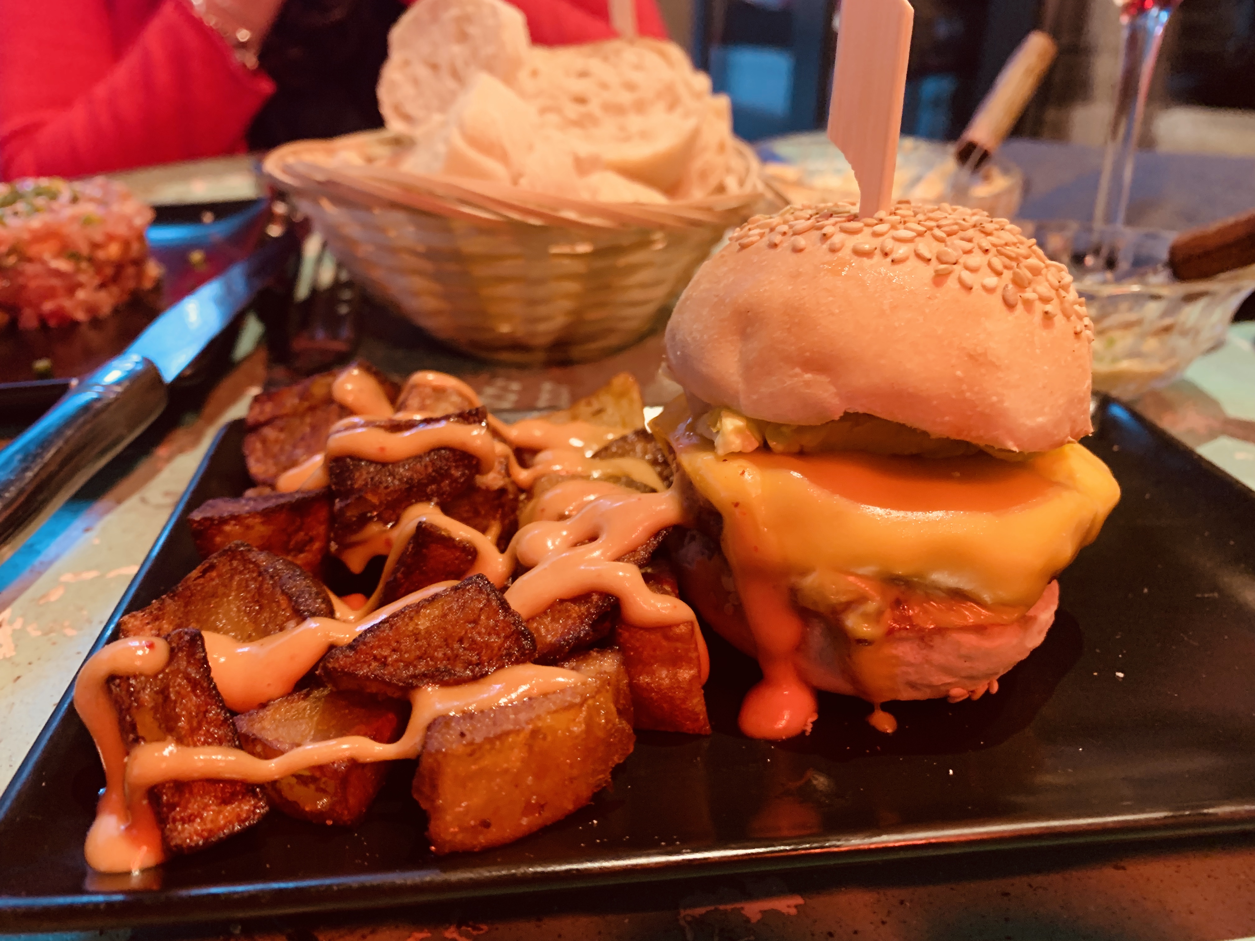 Ca fait un moment qu'on veut y aller, toujours complet... Hier soir on a reussi à avoir une table pour 4 enfin ! Lieu plutot branché sympa mais bruyant au niveau du bar (musique bien trop forte et les gens obligés de hurler) mais nous étions a l'étage pour diner heureusement... On a réservé le jour même, en arrivant on nous installe à l'étage. Personnel très agréable rien a dire ! Cependant au moment de commander, on nous annonce que beaucoup de choses sont en rupture car vendredi le stock s'est vidé.. ça aurait été bien de nous prévenir à la réservation (première erreur)... évidemment les choses typiquement espagnoles qu'on voulait n'étaient pas disponible.. un bar a tapas sans jambon pata negra c'est un peu étonnant... surtout que ça se conserve très longtemps... mais ce n'était pas la seule chose en rupture malheureusement... on a donc composé comme on pouvait... mais cela aurait été bien de prévenir à la réservation... également à notre arrivée plutot que de nous laisser nous installer et prendre l'apéro avant de nous prévenir... malgré les excuses ce n'est pas acceptable. Maintenant niveau qualité, ayant vécu en Espagne et étant un habitué du PETIT BARCELONE à Paris (un vrai restaurant tapas), j'ai trouvé ça très decevant... ce n'était pas mauvais mais au prix trop élevés qui sont pratiqués, on peut exiger des portions plus généreuses ainsi qu'une qualité un cran au dessus... nous n'irons plus ça c'est sur.. apres une facture de 130eu pour 4, on a finit dans un autre restaurant pour manger une deuxieme fois ayant encore faim... ce qui n'est pas normal et qui a finit par nous couter cher... donc à la limite y aller pour l'apéro... mais pas plus... mais les prix trop élevés font que perso je n'y retournerai pas même pour l'apéro.. cocktail a 11euros... je ne parle meme pas du mini hamburger et ses 4 morceaux de patatas bravas... ridicule.; la viande est bonne, mais la tostinette chedar president est froide , et la présentation, je fais mieux chez moi pour bcp moins cher... d'ailleurs les patatas bravas sont servies avec une sauce coktail (ketchup mayo), pas degueu mais bien loin de la vraie sauce.... Vraiment dommage car une belle promesse au départ, qui n'est pas tenue du tout... même sans la rupture de stock les prix font que cela n'est pas une adresse que je conseillerais.. on mange mieux et moins cher dans le centre de Paris ce qui est plutot illogique...