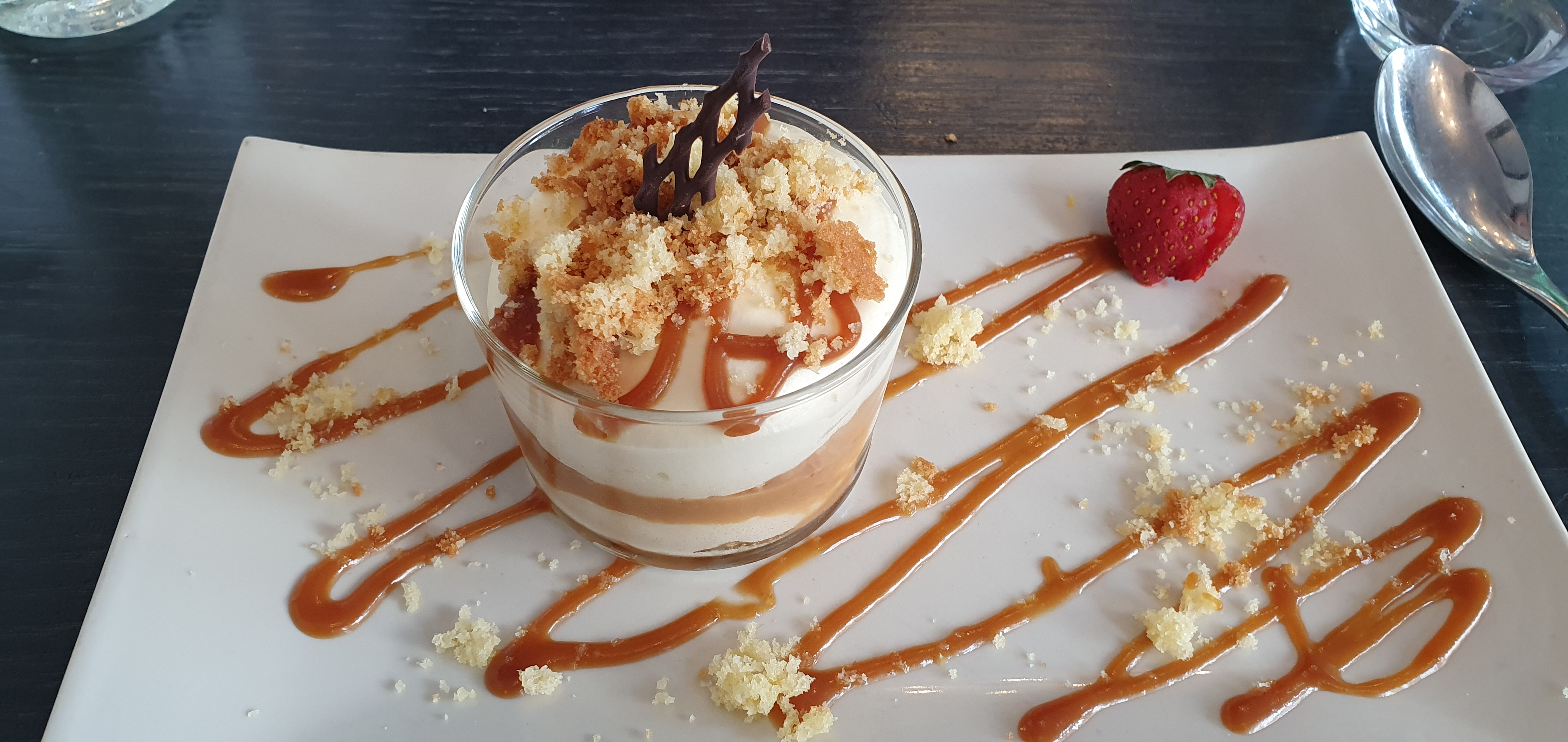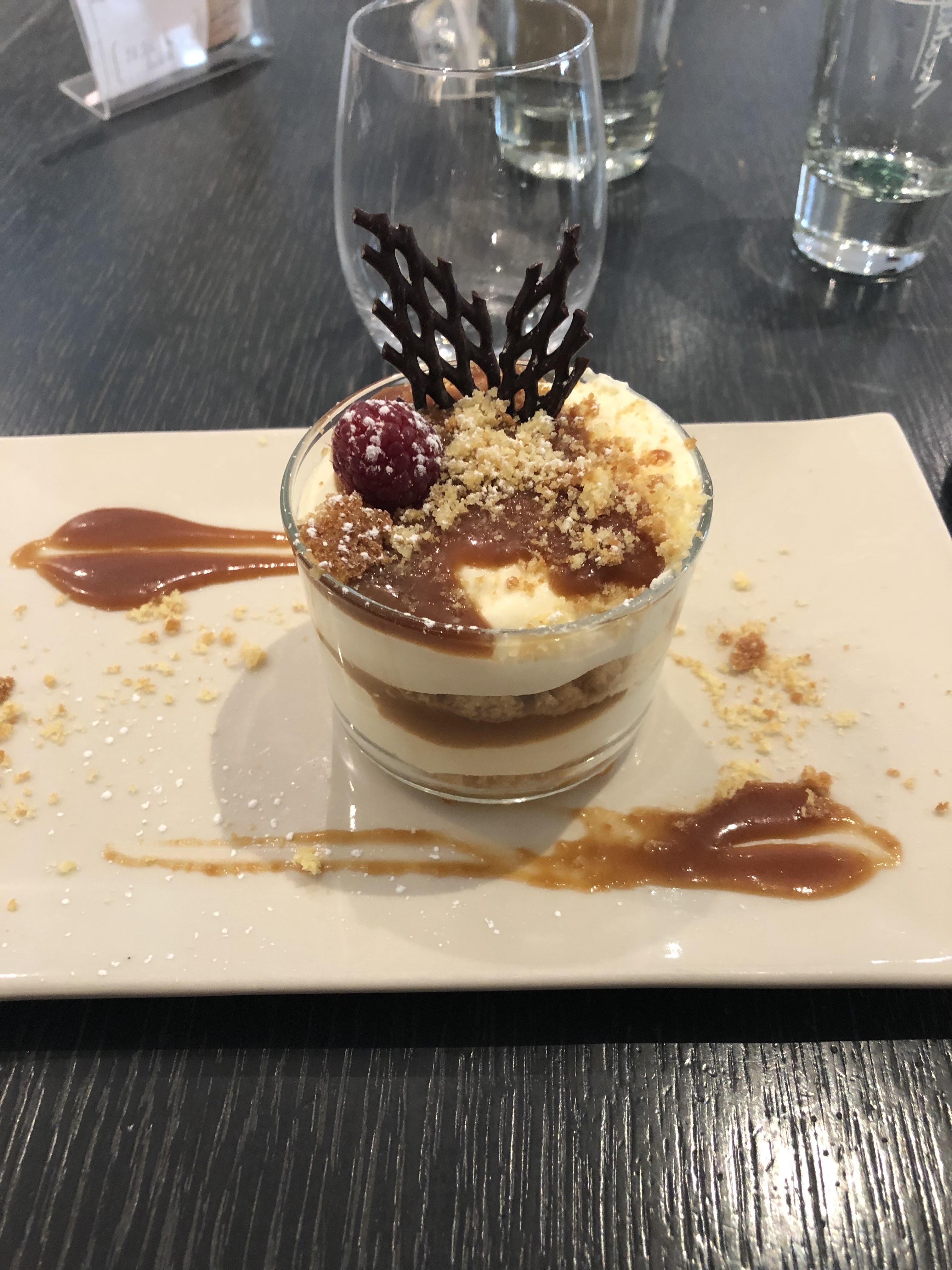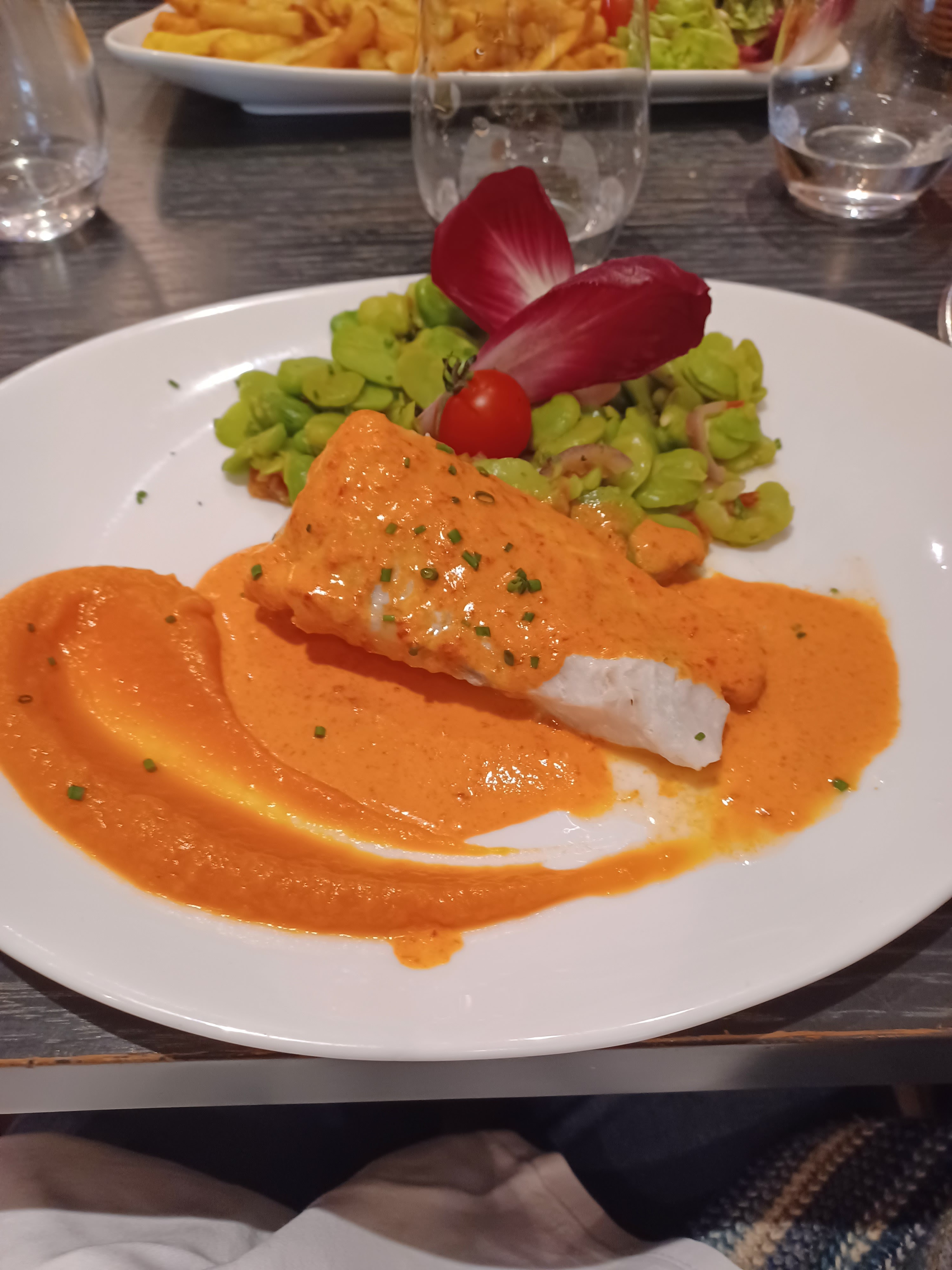 Un régal auquel je ne m'attendais pas. Tout d'abord une carte simple mais avec suffisamment de choix pour régaler tout le monde. Ensuite une assiette bien présentée et bien remplie mais le plus important la qualité des aliments qui n'a pas échappé au rendez-vous, la sauce au beurre blanc qui accompagnait le saumon se marie parfaitement avec la purée de céleri de même qu'avec le risotto. Aucune baisse de régime avec le dessert (mousse au chocolat maison) d'une légèreté affolante. Restaurant que je recommande fortement avec un service très à l'écoute et professionnel.