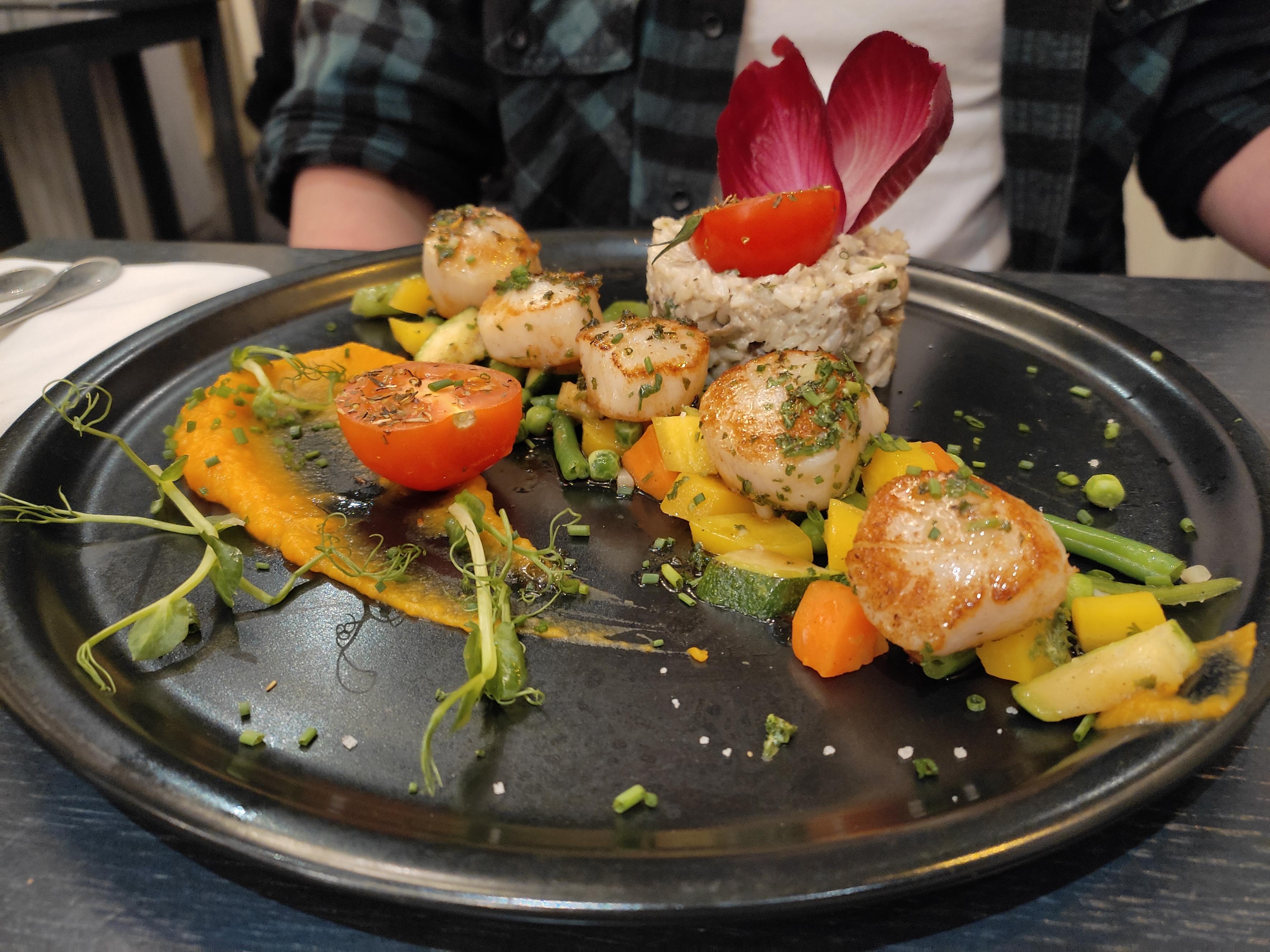 Bon accueil, carte assez courte mais variée. Les allergies sont bien prises en compte. L'ambiance du restaurant était trop chic à mon goût mais on va au resto pour ce qu'il y a dans l'assiette Pour moi c'était mi cuit de ton avec des légumes. C'était bon, bien assaisonné