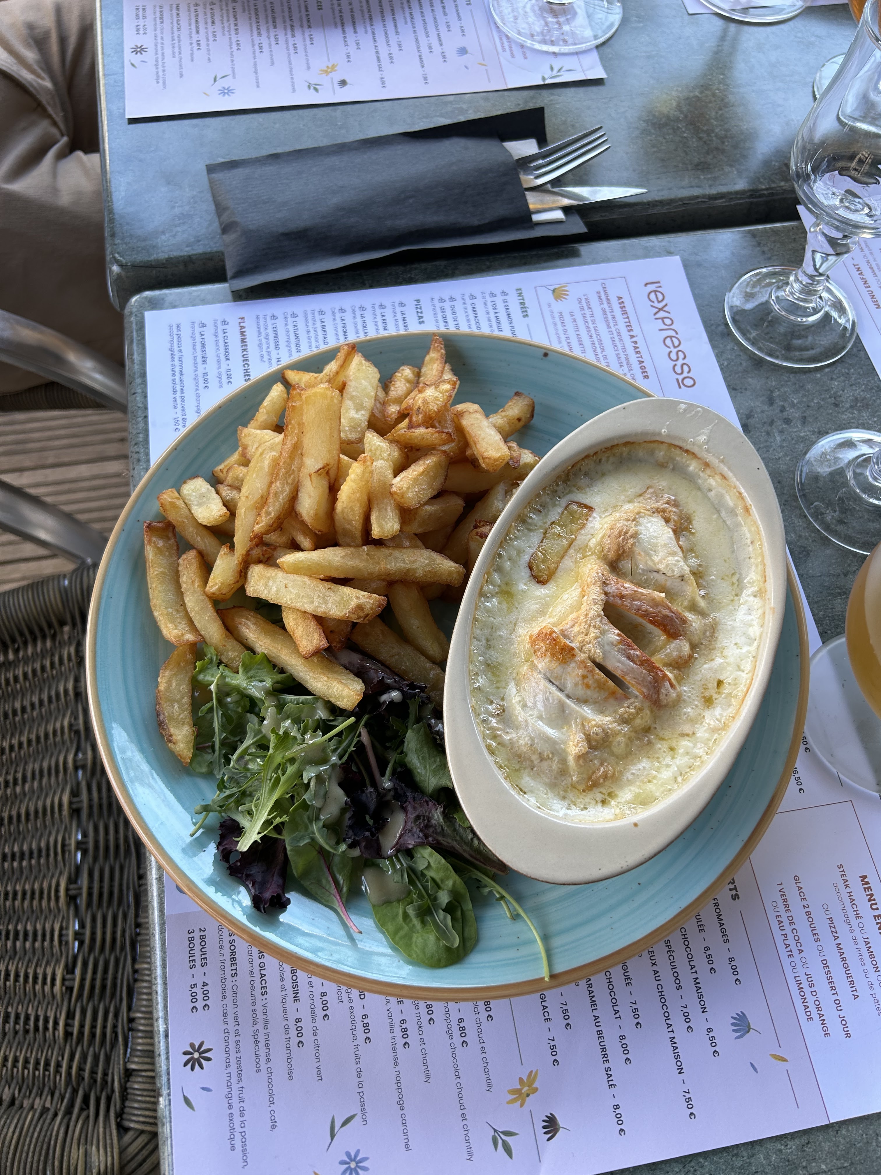 Bonne découverte avec une terrasse sympathique. Je me suis régalée avec une bonne petite salade bien garnie. Le personnel est assez speed mais serviable.