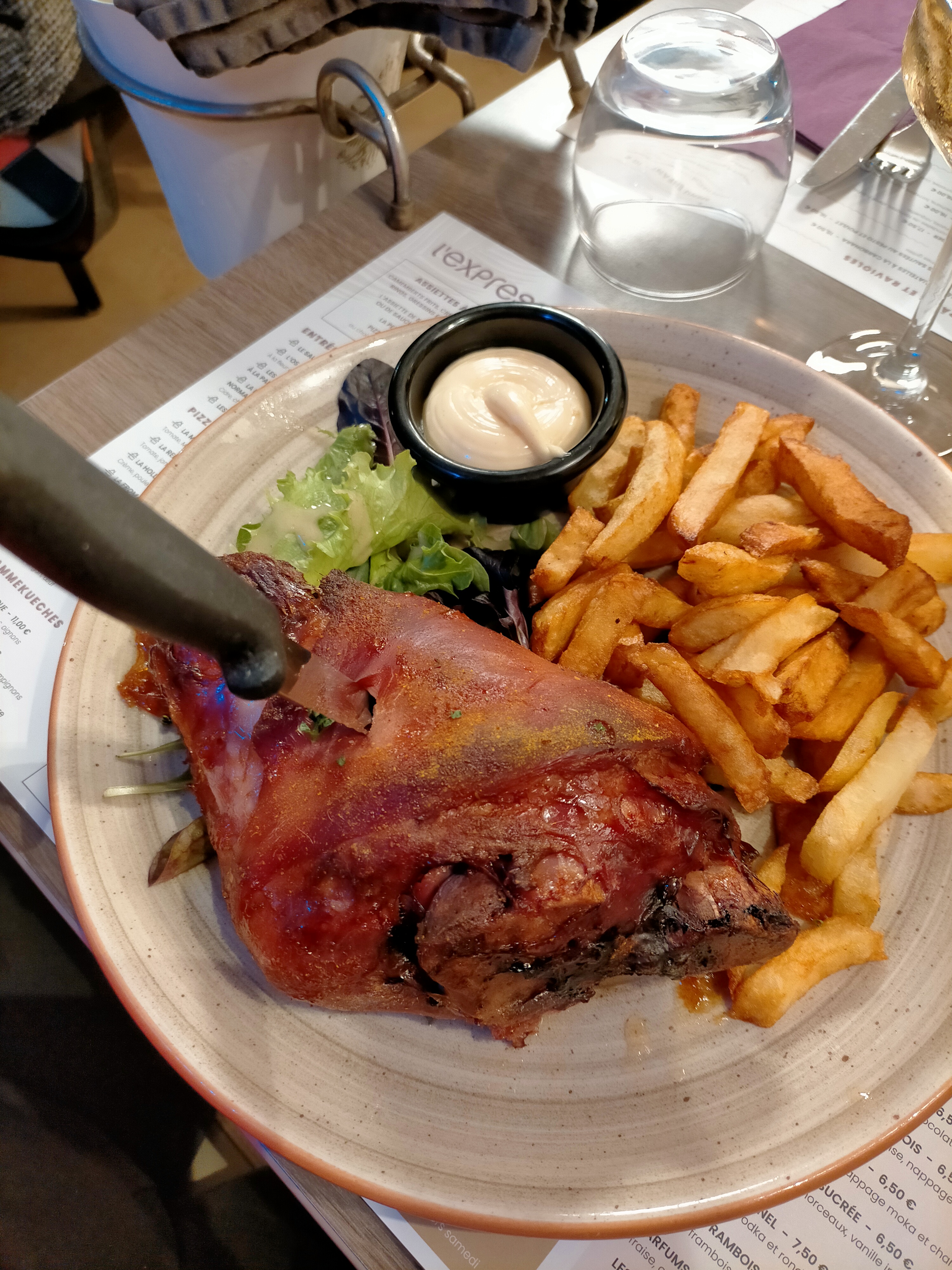 Très bonne brasserie, j'ai pris un pluma de porc à la crème d'ail et c'était délicieux.. Ma mère des ris de veau et s'est également régalée..