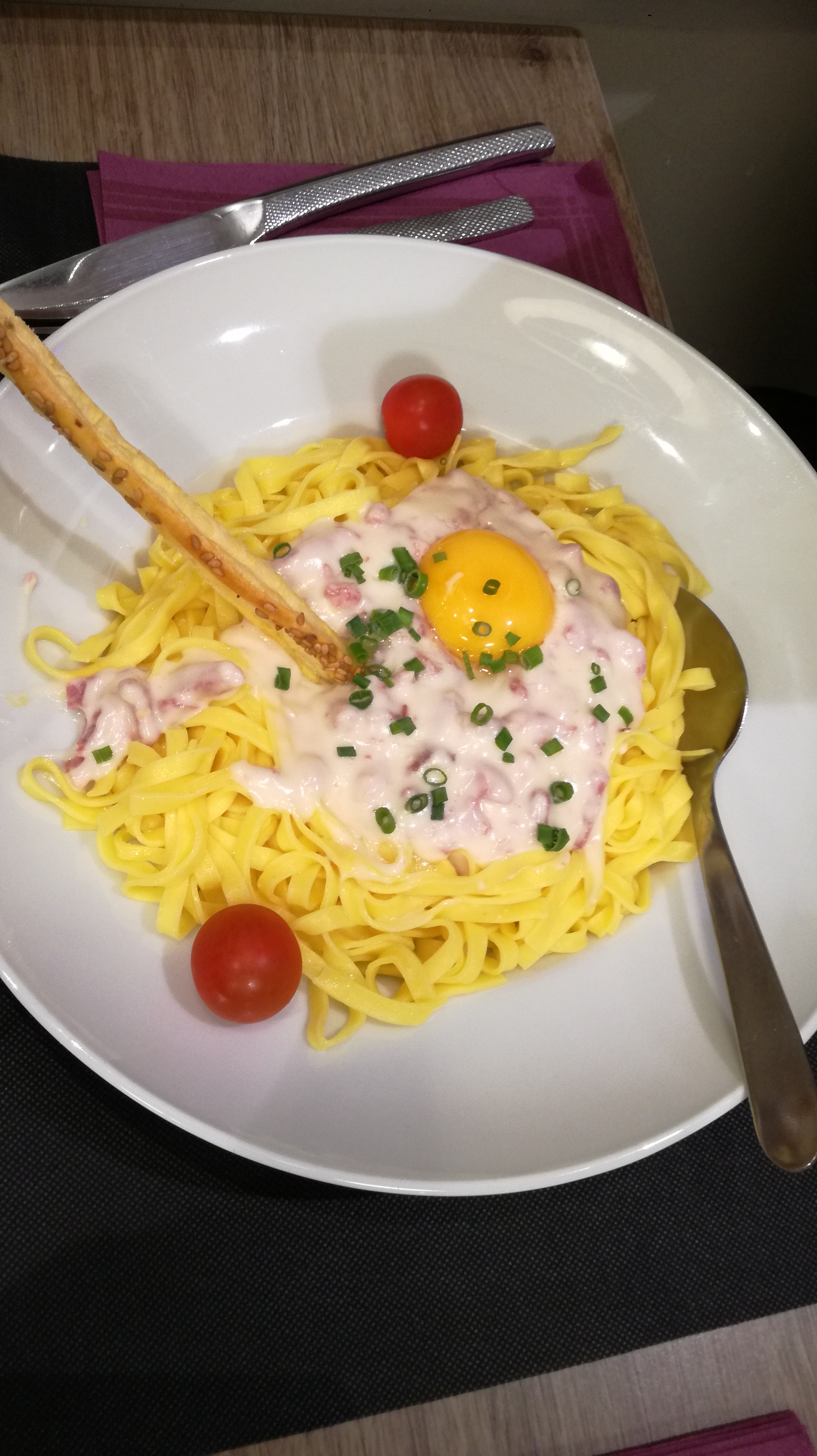 J'ai voulu tenter de nouveau les pâtes carbo et j'aurai pas du . c'était plutôt des pâtes à la sauce, je cherche encore le jambon un peu déçu par rapport a la dernière fois malgré cela aucun geste et le prix ne baisse pas mais la qualité oui dommage!!!