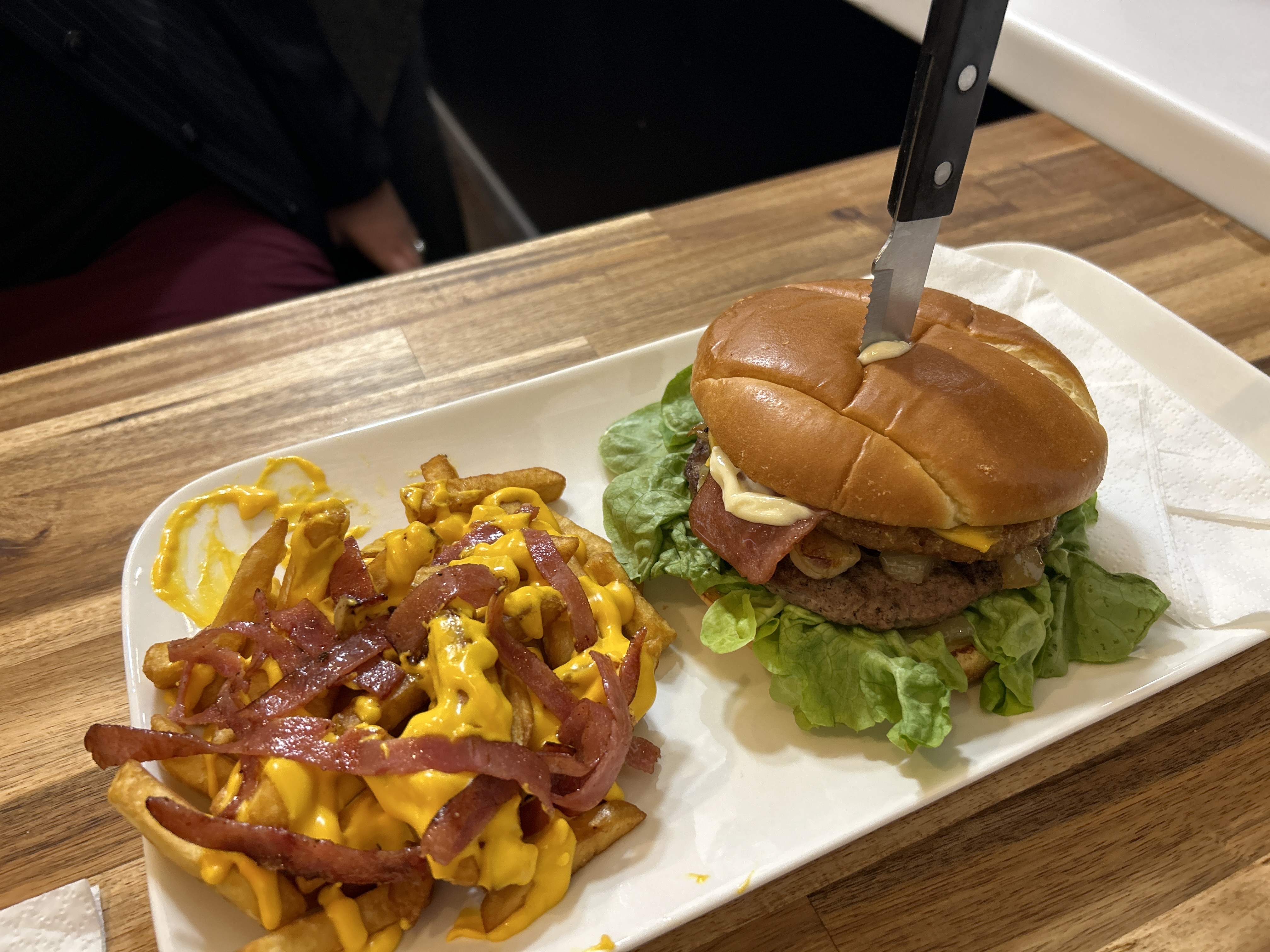 Pour la première fois que nous venions manger, nous nous sommes régalé. Hamburger très copieux et très bon avec ses frites au cheddar.Serveuse agréable. Nous recommandons🍔🍟