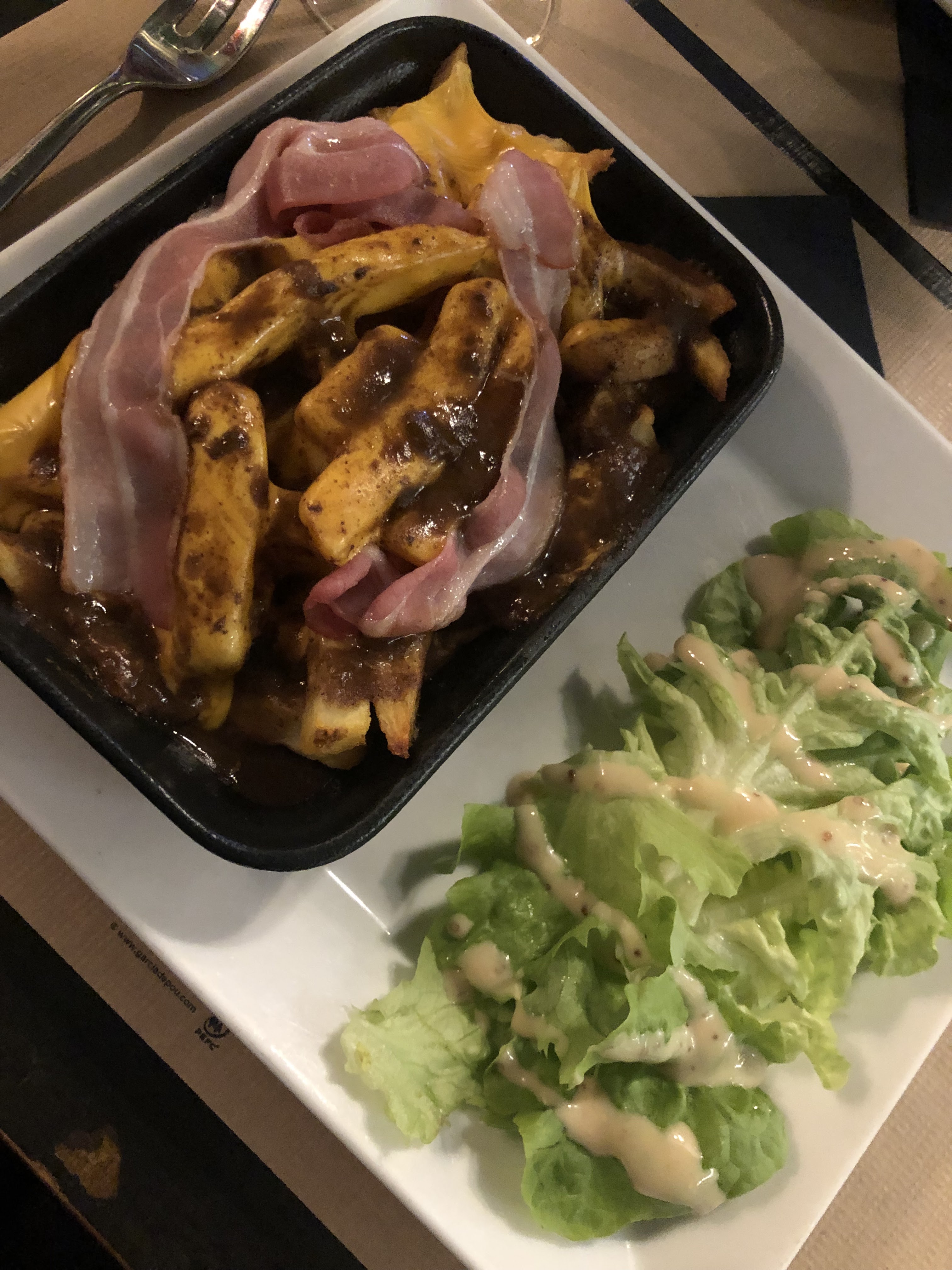 Commandé via deliveroo soir de la St Valentin. J'habite près du resto mais souhaitais manger chez moi: le Welsh était presque cramé et 6 petits morceaux de viande pour la carbonnade, je me suis régalé mais j'ai encore faim. Frites surgelées, arrivées froides. Je passerai plutôt en salle la prochaine fois.