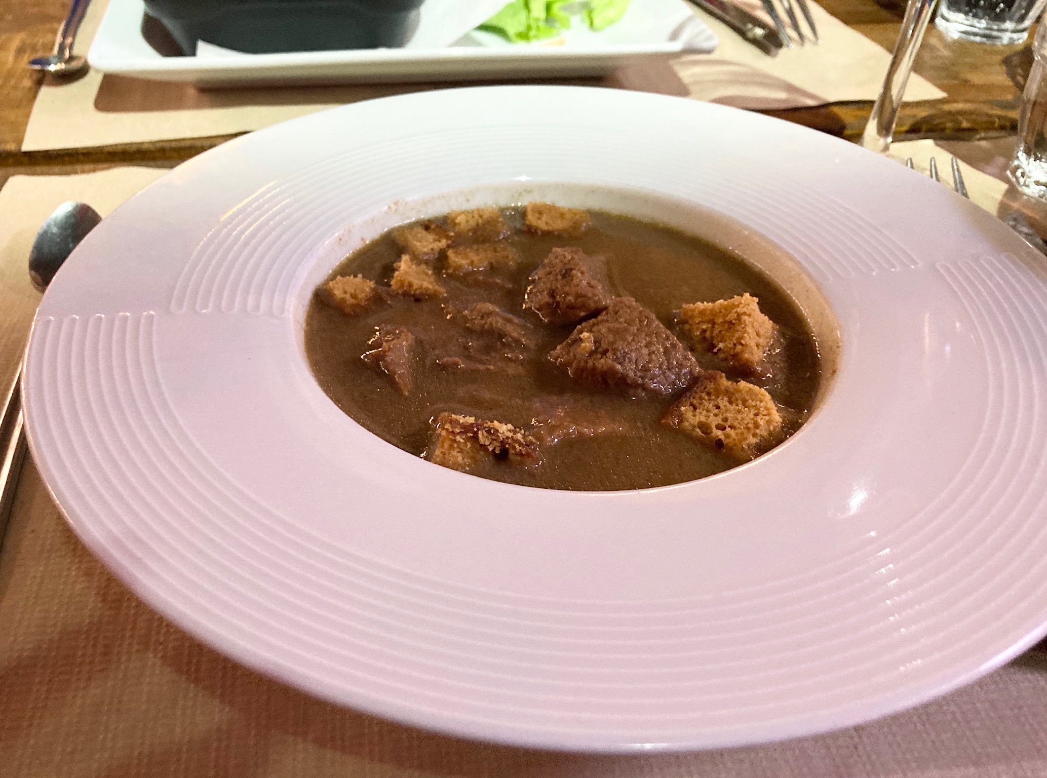 Ignoble carbonnade : sauce coupée à l’eau, viande sèche probablement servi la veille, frites non assaisonnées et industrielles, pain décongelé sec. Pour 18e c’est du vrai foutage de gueule. C’est clairement la pire carbonnade que j’ai mangé sur Lille
