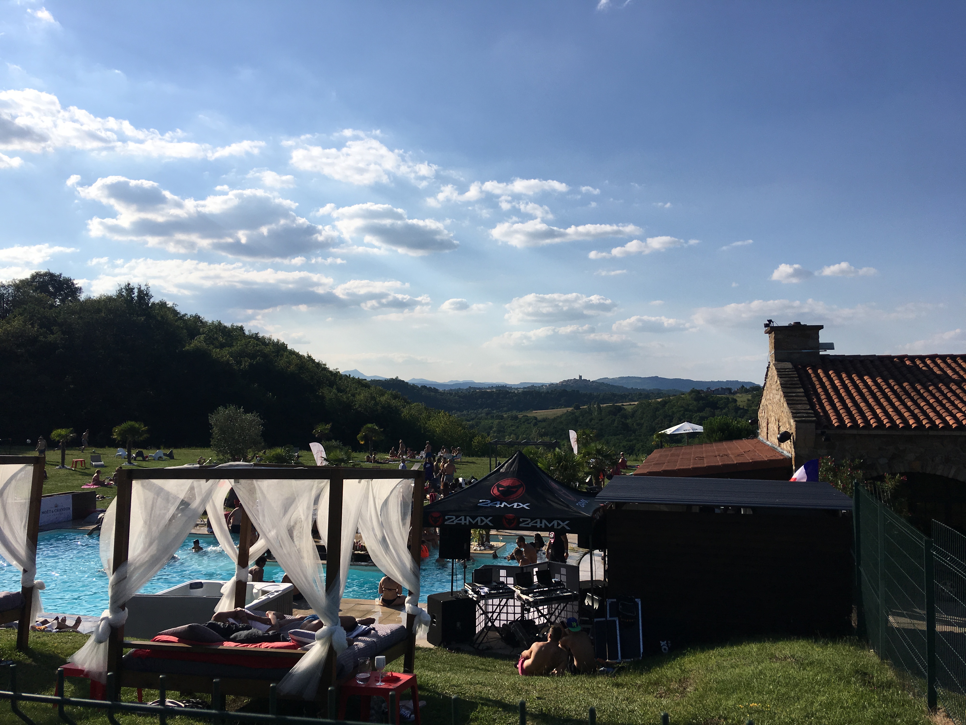 A la vue des commentaires, mon compagnon et moi ne pensions pas venir, nous y sommes quand même allés en ce jour de canicule et nous ne regrettons pas. Super cadre calme avec vue sur Montpeyroux. Ambiance sympa (le registre de musique devrait juste un peu varié). Personnel sympa dont l’agent de sécu qui nous a super bien accueilli. On peut boire, manger, prendre des tapas, fumer, être sur des transats, des beds ou simplement sur la pelouse. Et contrairement à ce que j’ai pu voir dans les commentaires, je ne trouve pas le prix des consommations excessives, on est sur les mêmes prix qu’à Clermont. Prix d’entrée 6€, correct pour le cadre et les services proposés. Et ça change des piscines où il y a 600 gosses en train de gueuler. Nous reviendrons avec grand plaisir.