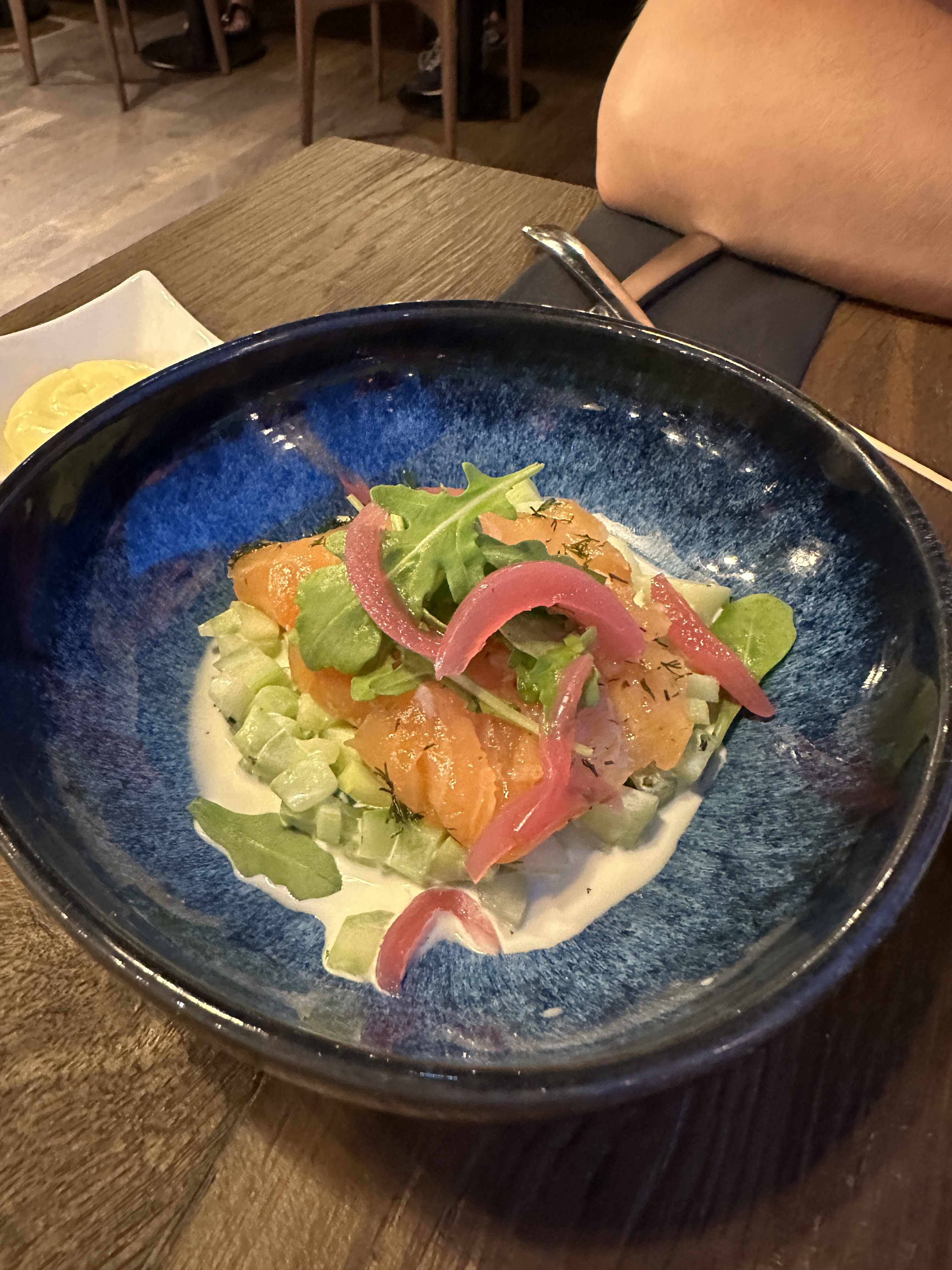 Très jolie décoration, serveuse très agréable Le gravelax était très frais et le plat très bien assaisonné