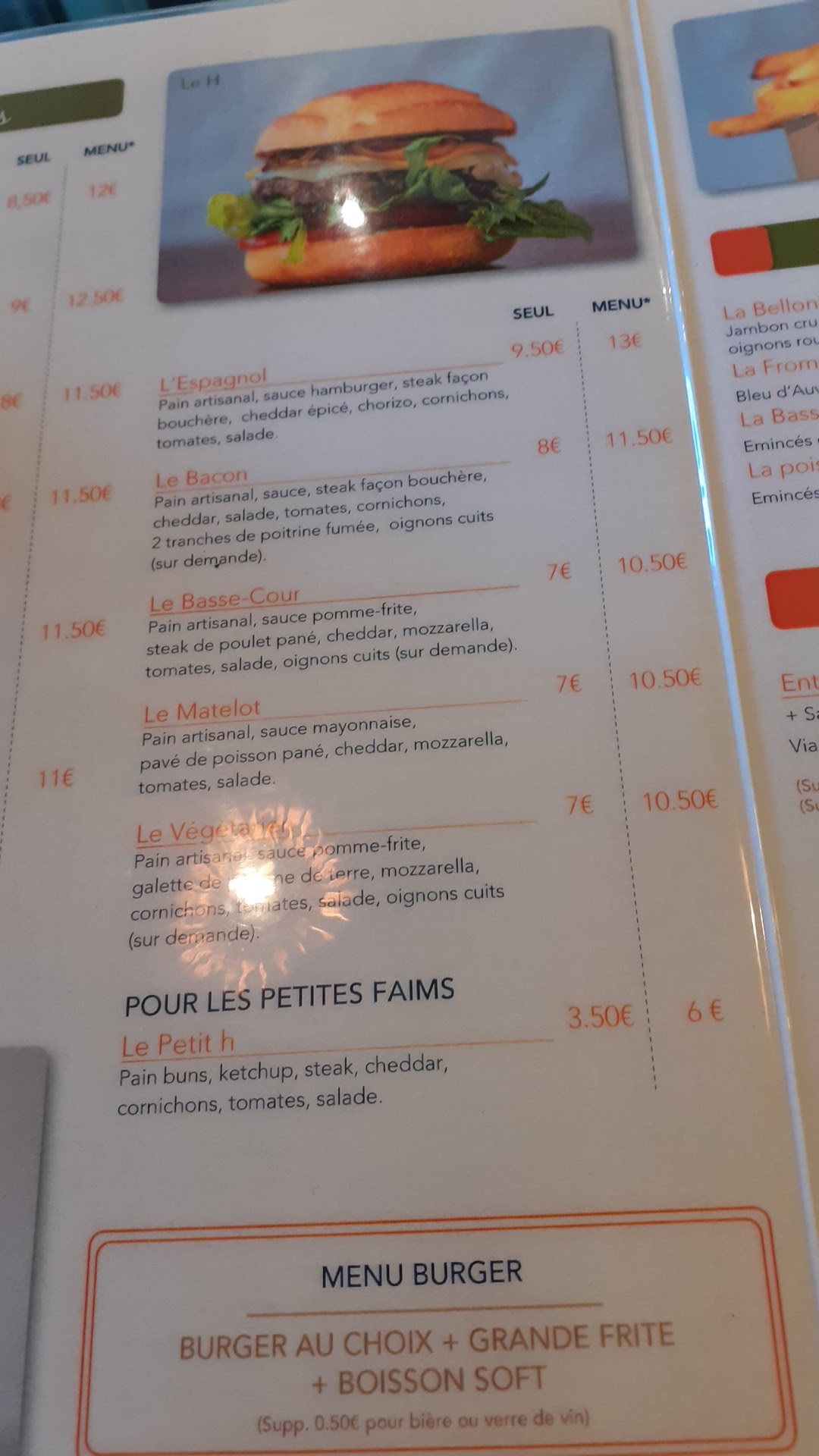 Pas mal les menus enfants Hamburger de qualité Frites (pas très présentables moyen) Accueil sympa A conseiller pour une halte