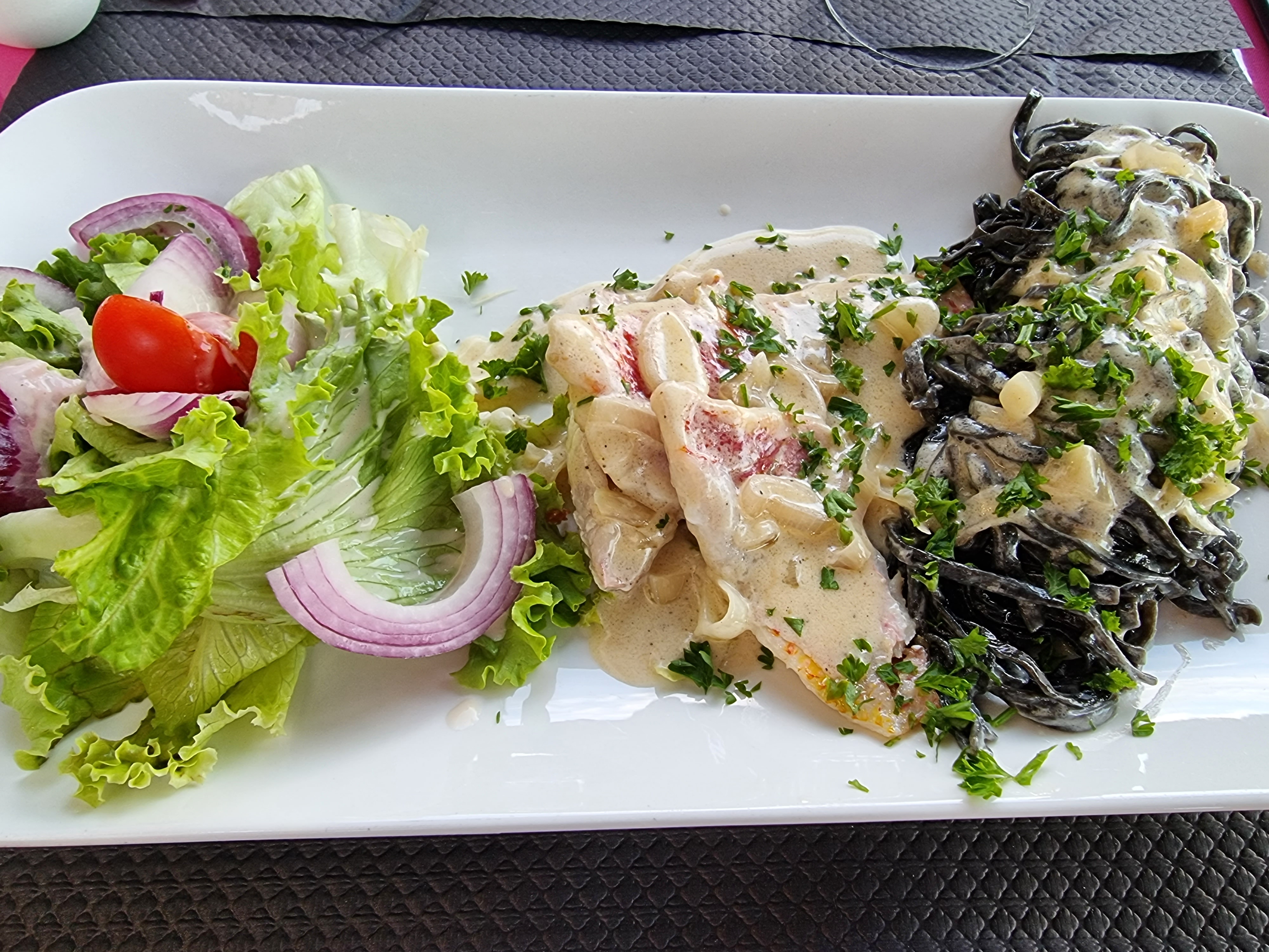 Nous avons passé un excellent repas. Mention spéciale pour les filets de rouget pâtes à l’encre de seiche et sauce beurre blanc, un délice qui m’a réconcilié avec le rouget ! Gentillesse et professionnalisme également au rdv.