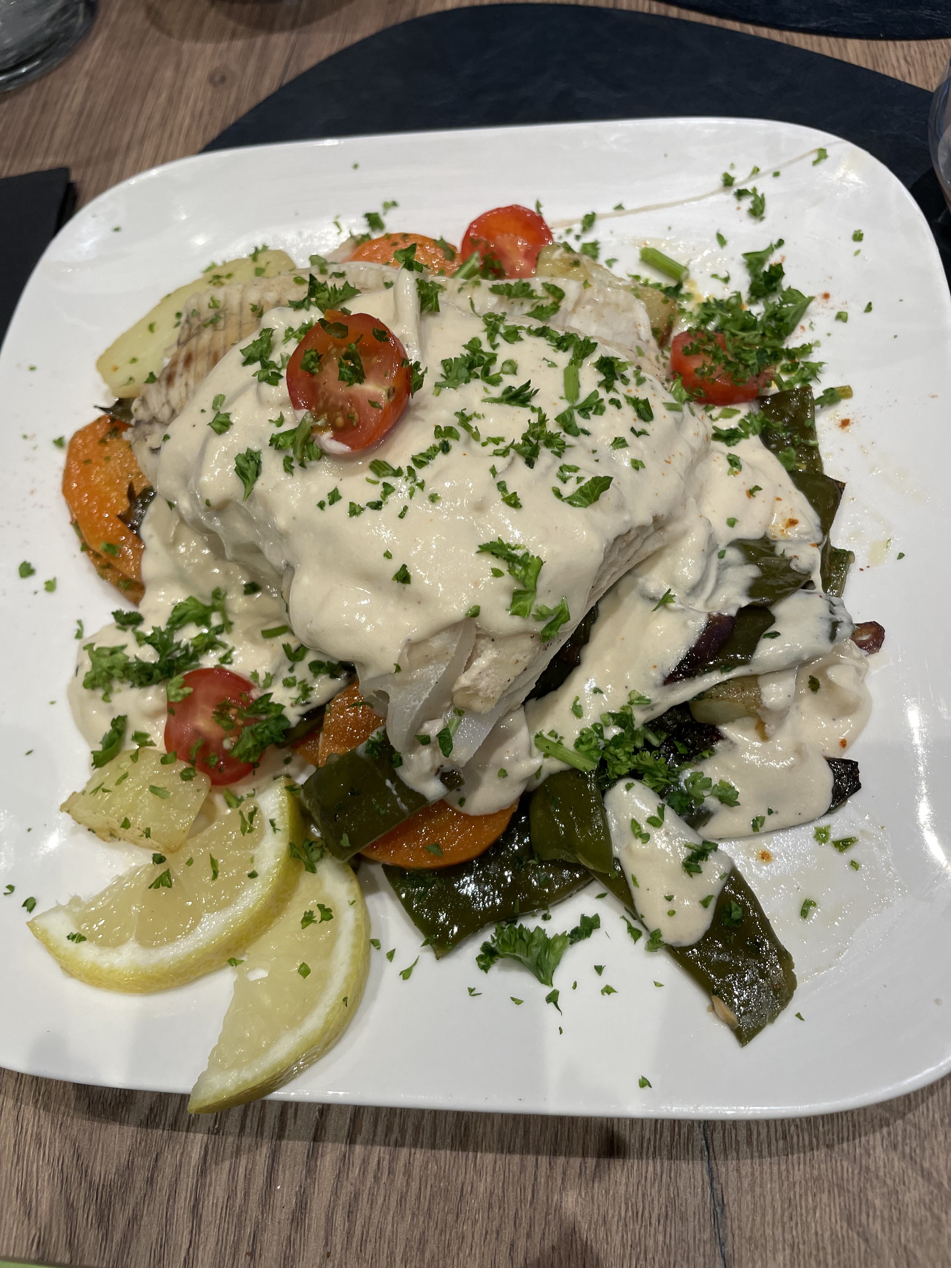 Le cabillaud et le rouget étaient top, cuisson parfaite ! Le tiramisu et le riz au lait délicieux ! Accueil chaleureux et bienveillant. Tout est parfait !
