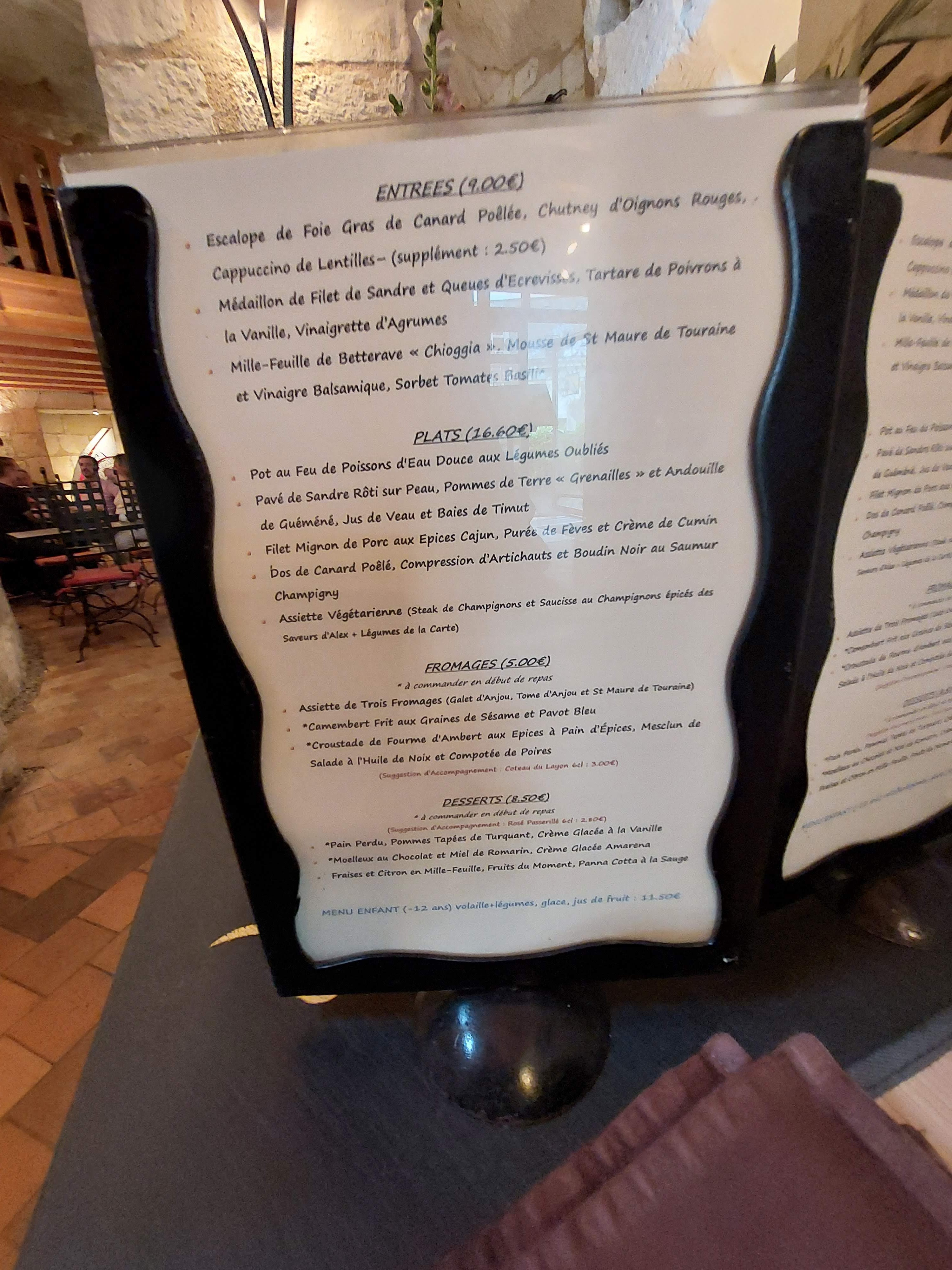 Un joli restaurant troglodyte. Les prix à la carte sont tous les mêmes pour chaque plats. La nourriture était très bonne et bien présenté. Le service parfait: pas trop rapide ni trop lent, on ne se sent pas oppressé. Restaurant super beau, propre et propose de bons choix de plats ou dessert divers et variés. C'était une très bonne soirée. Merci. (Prix mentionné pour 2 personnes avec cocktail, vin et digestif)