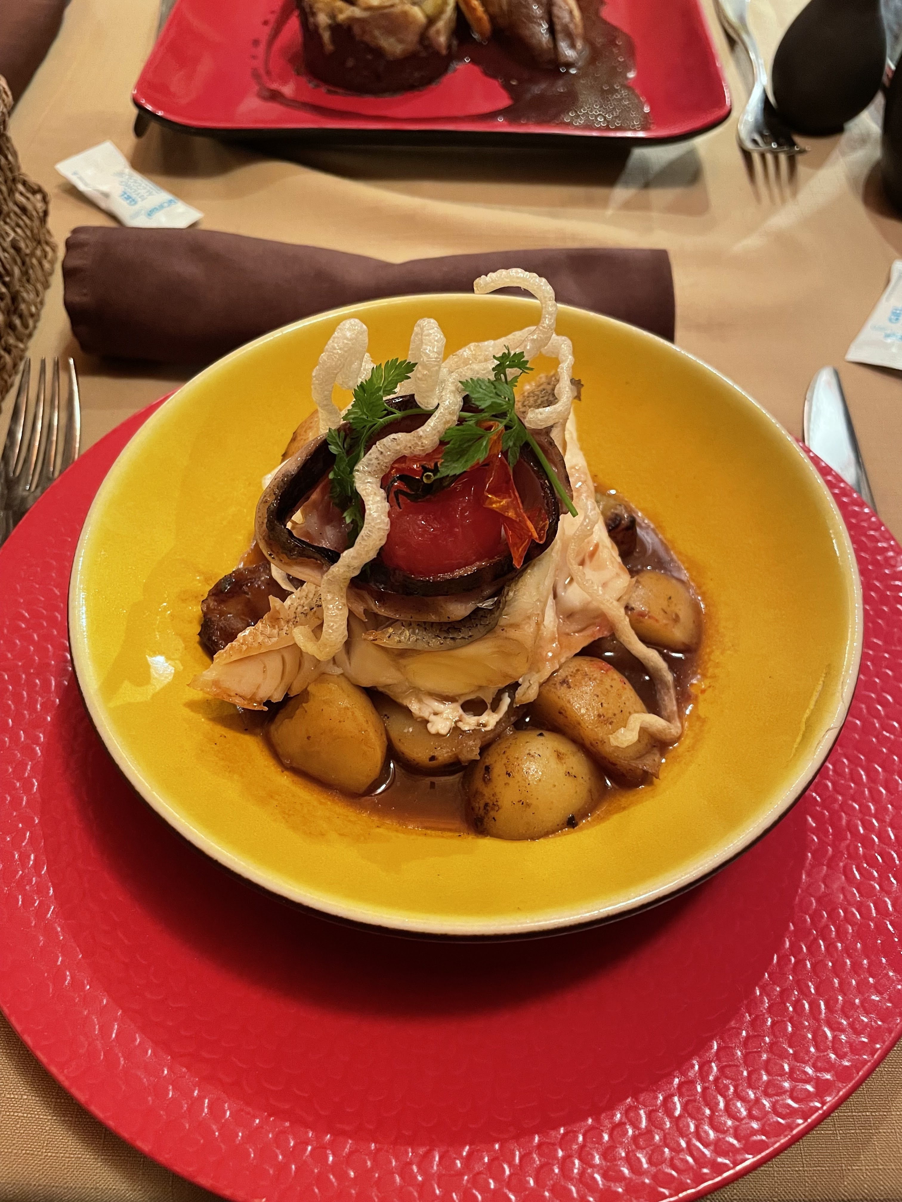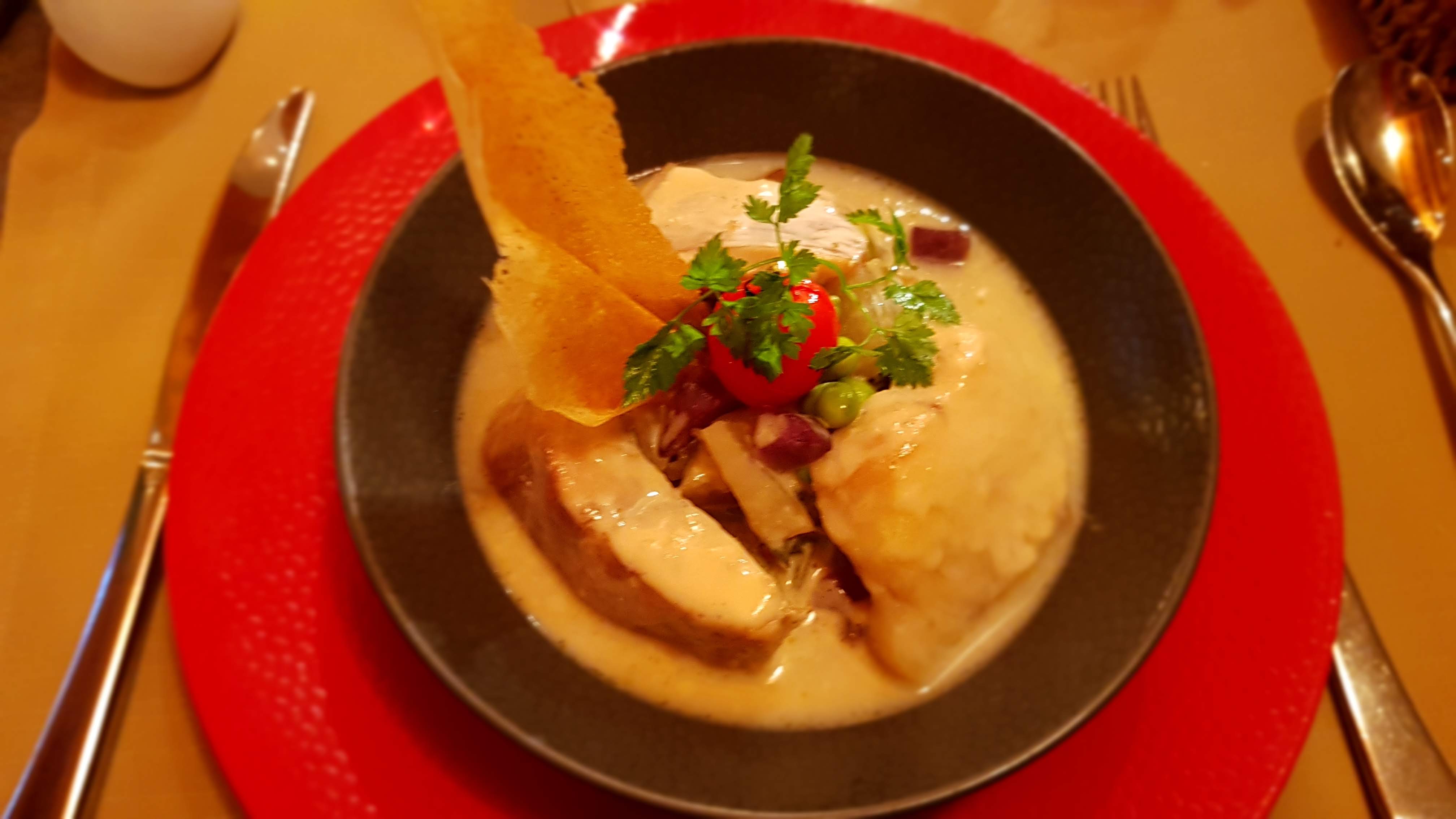 Cuisine cohérente avec le lieu repas très bon je recommande