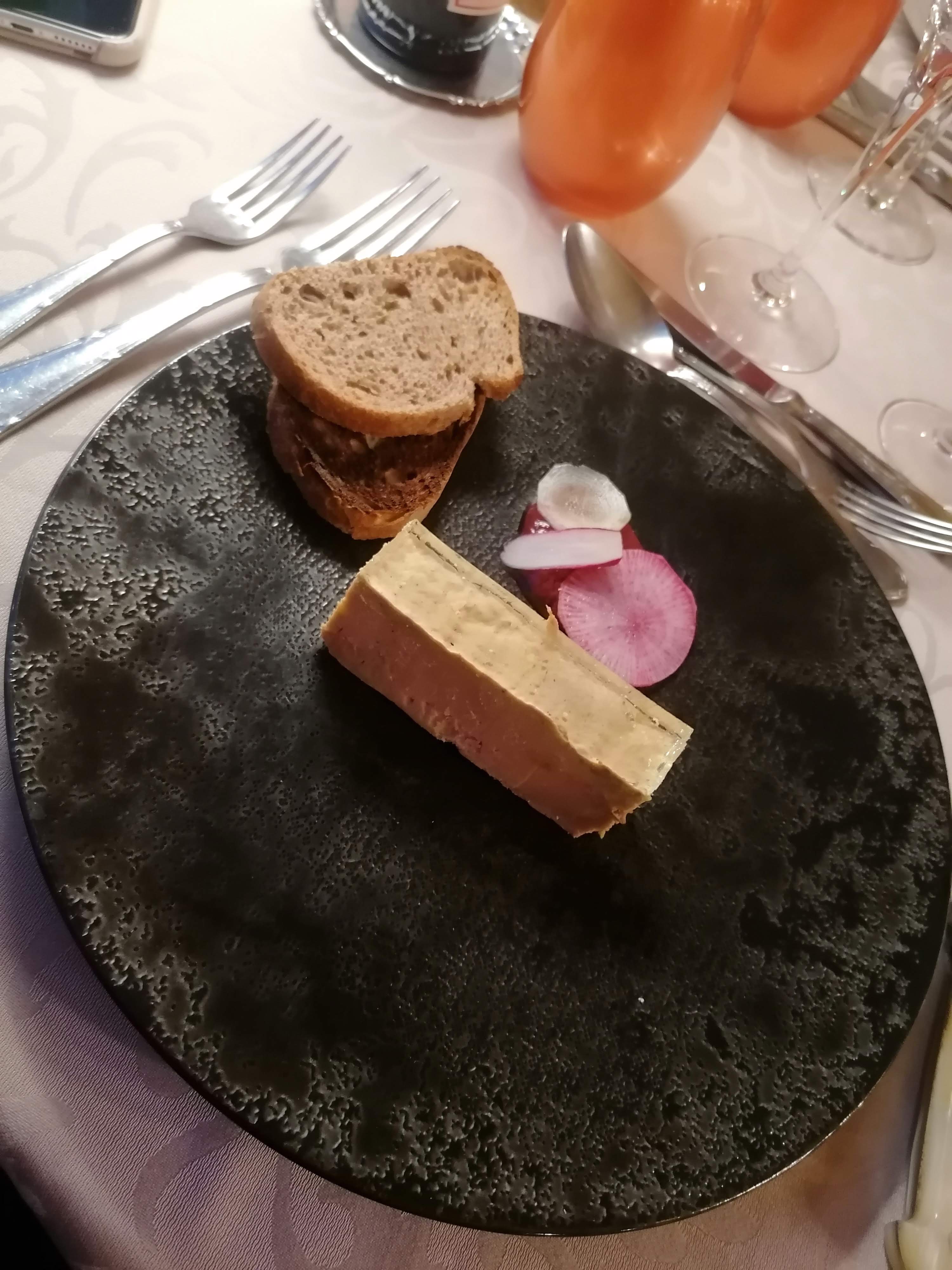 Je me permets de noter suite à une vente à emporter pour deux repas (26€/pers) Entrée foi gras (tranche trop petite !) Plat cabillaud avec très peu de légumes ! Civet de marcassin bien 👍 Dessert verrine chocolat + verrine spéculos (bon) La note de 3* et pour le rapport quantité/prix (la qualité est presente) Pour le prix le pain pourrait être compris !