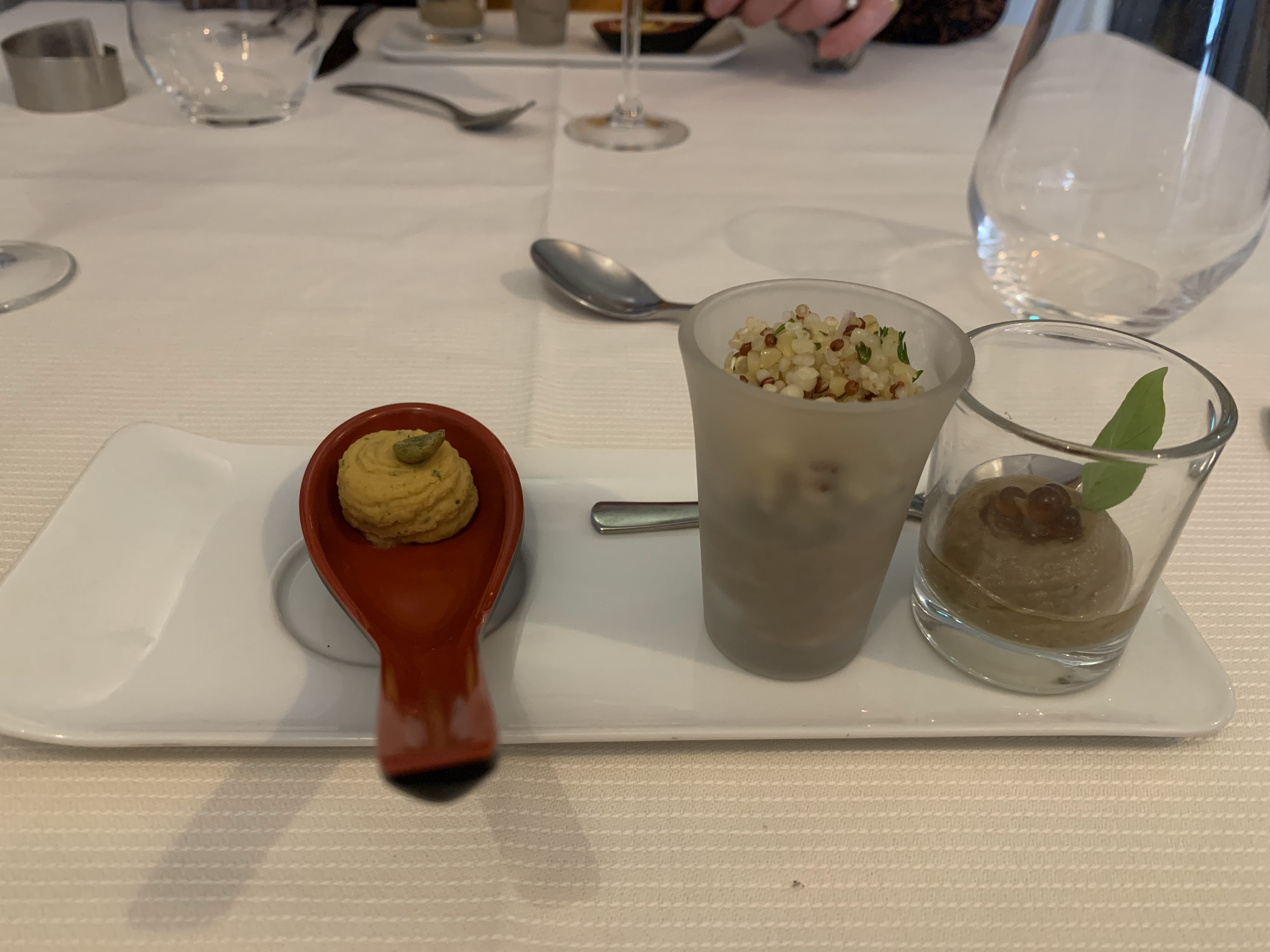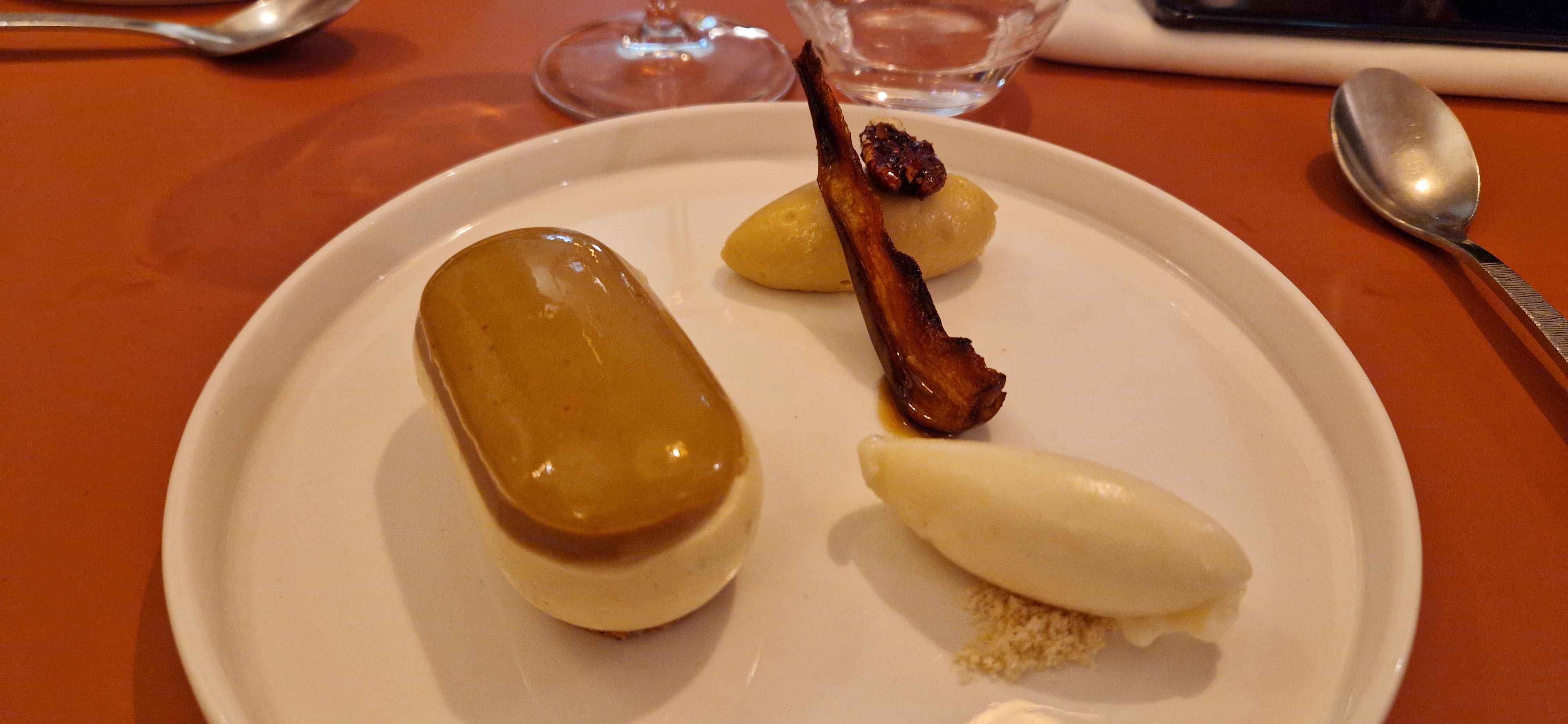 Un très intéressant voyage culinaire Des goûts affirmés, agréable,goûteux Une imperfection sur la cuisson de la lotte,un rendu un peu sec Le résultat d'ensemble est très bon Une serveuse seul en salle, dynamique,souriante, attentionnée