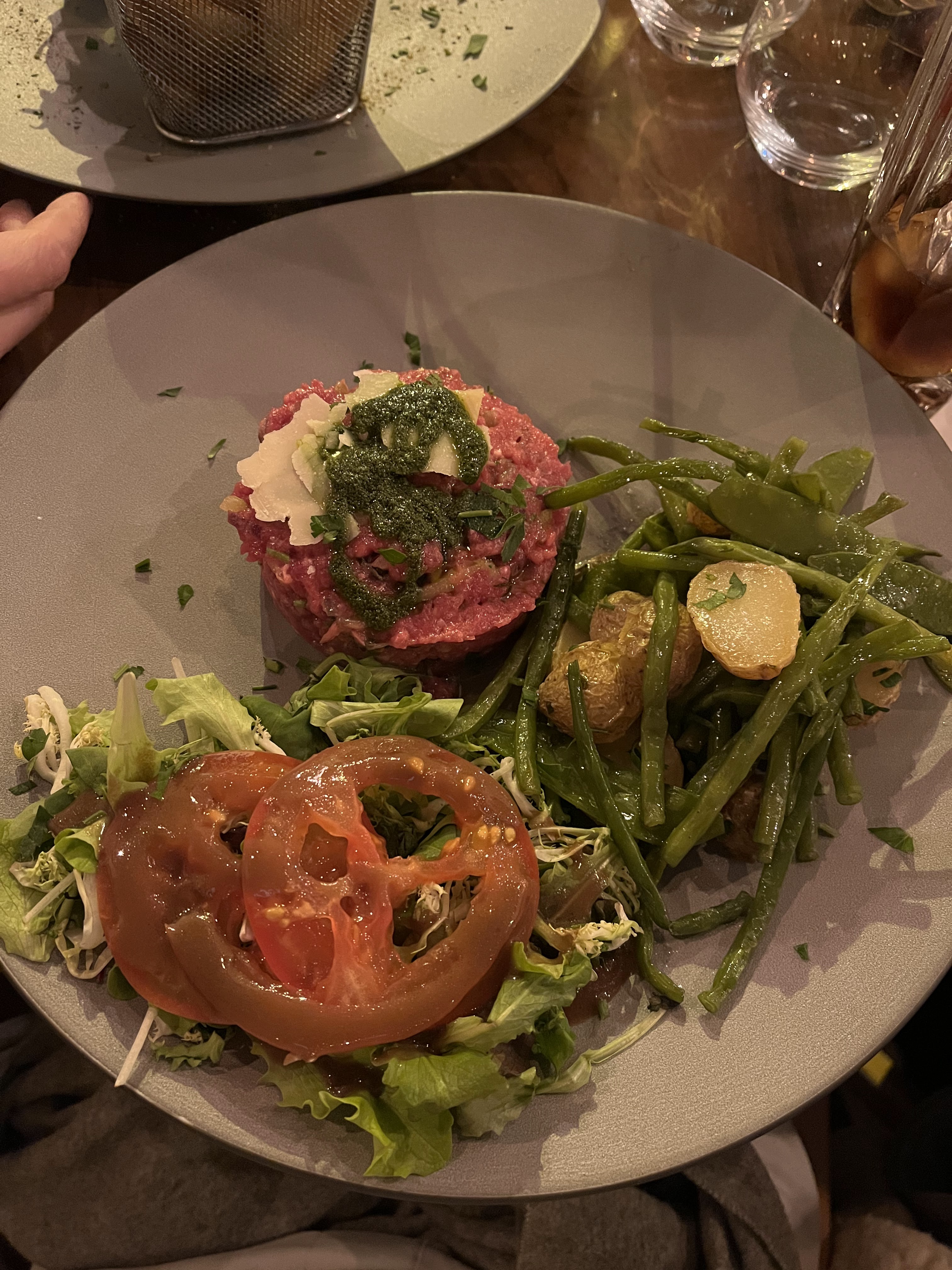 Personnel très sympathique, petit restaurant avec terrasse. J'ai eu un tartare assez épicé mais toujours savoureux. Ce n'est pas vraiment bon marché, mais c'est le cas partout à Paris.