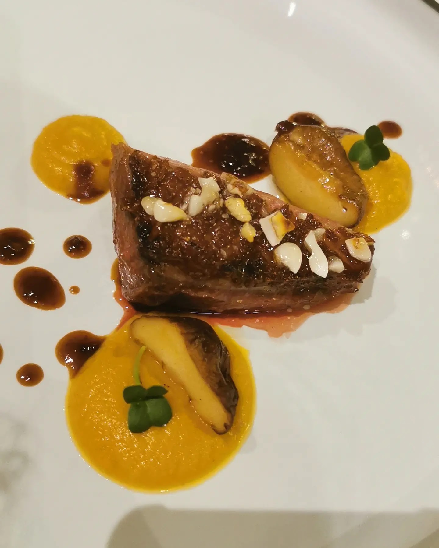 Cuisine raffinée, association surprenante. L'oeuf parfait était parfait, le canard avec le craquant des dragées,et le purée de carottes-verveines, était vraiment très très bon. Une belle découverte: l'espuma de persillé de brebis sur une compotée d'abricots. Le petit point noir, la salle est un peu bruyante.. Le service est impeccable. Ne pas hesiter.