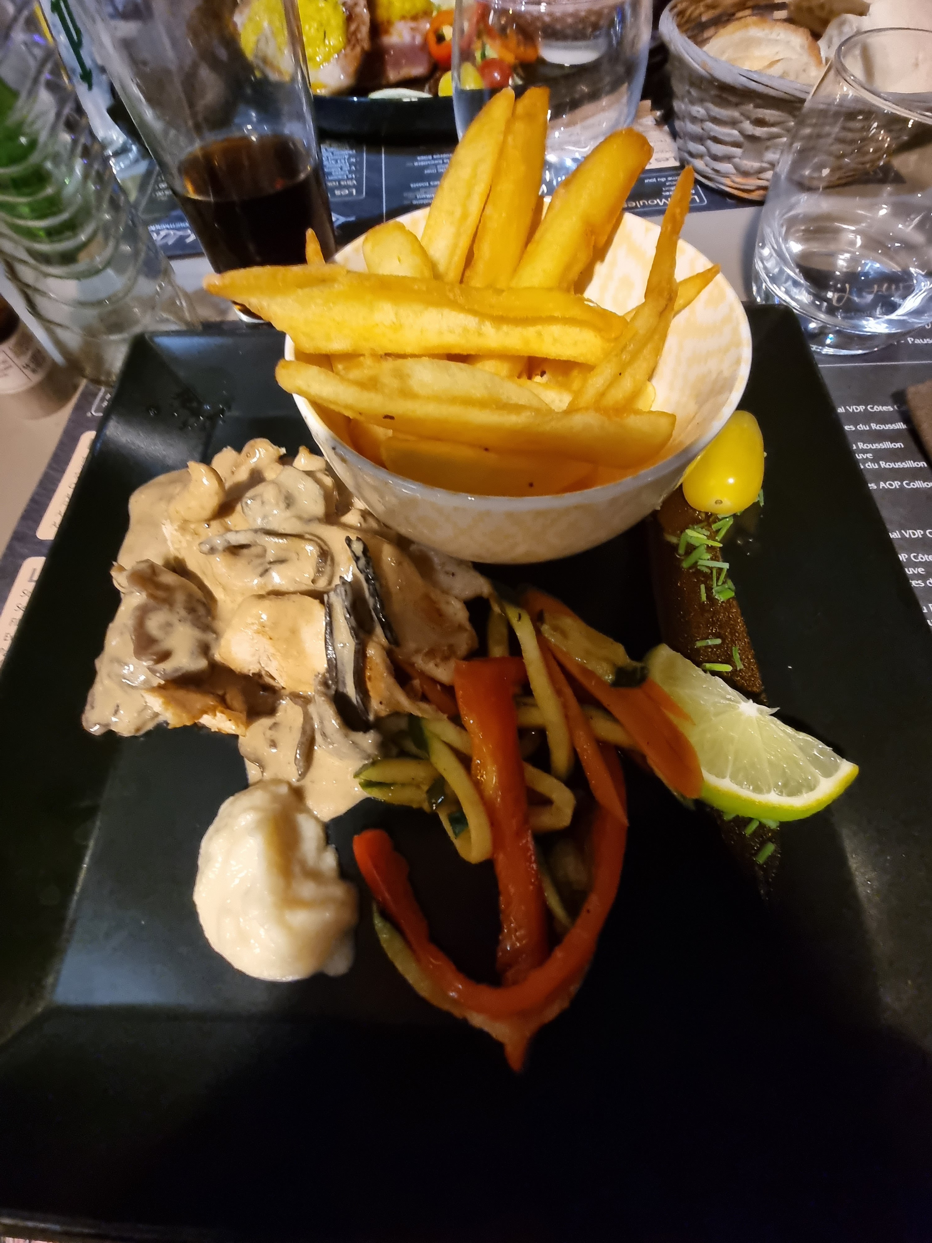 Déçue par le plat chaud, la dorade avec beaucoup d'arêtes et les légumes pas très bon. La sauce forestière du filet de poulet avait un mauvais goût. Les burgers des enfants étaient sans sauce, donc fade. Le service a été rapide au début mais très long à la fin. Heureusement le personnel était agréable.