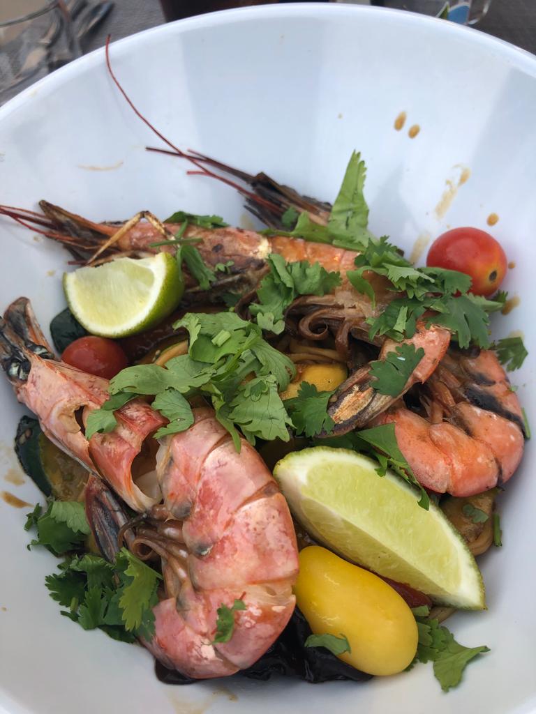Plat asiatique wok nouille légumes croquant gambas voir photo je le recommande